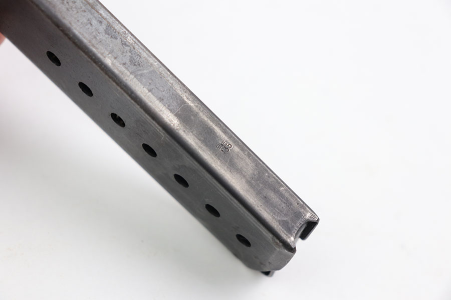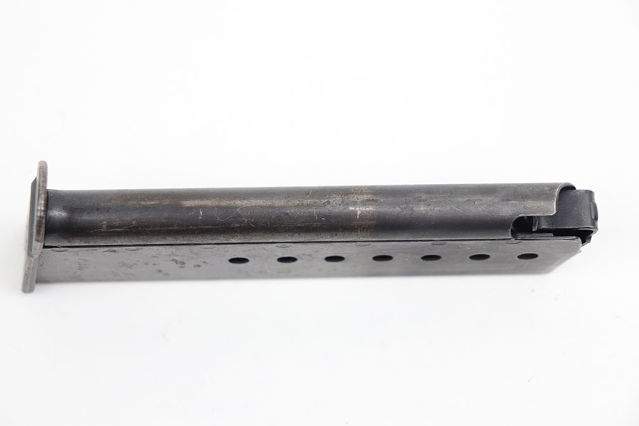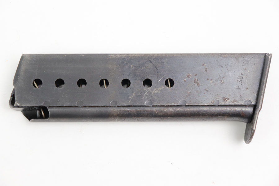 12/16/20 – This is an original Mauser P.38 magazine from WW2. The spine is eagle/135 proof stamped. The side of the frame is P.38v stamped. No other markings. Some light surface wear but no excessive rust or pitting. Original finish is mostly in tact. Fully functional spring.