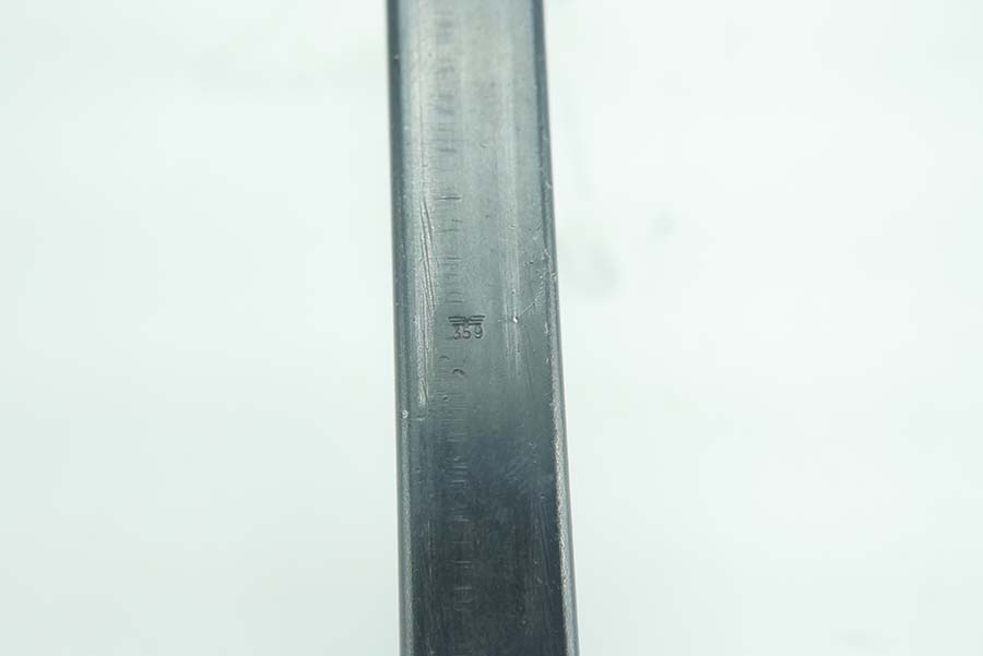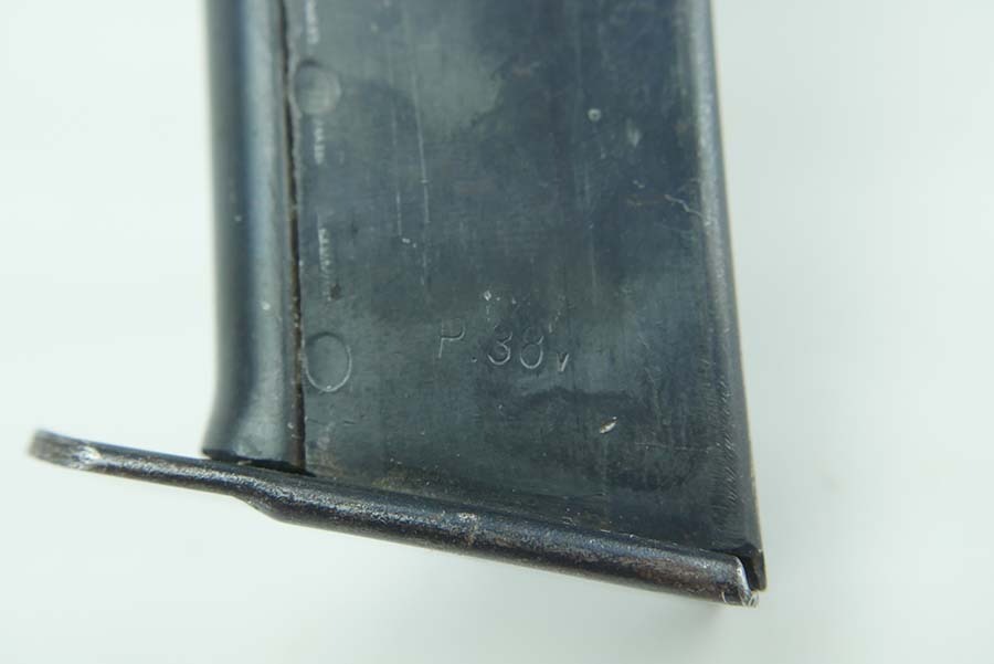 11/11/24 – This is a Eagle 359 Walther P.38 magazine. The magazine is in excellent overall condition with only some minor surface wear and a small portion of finish wear on the bottom heel of the magazine. The magazine tube is P.38v stamped on the left side, as well as, stamped with an eagle 359 proof on the spine. The spring is strong and fully functional.