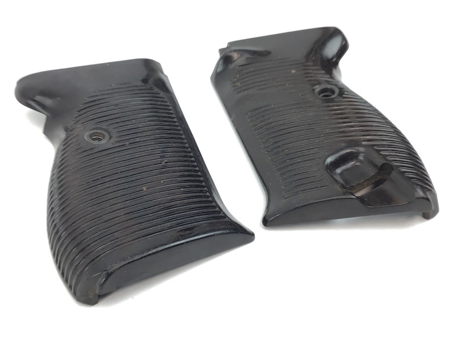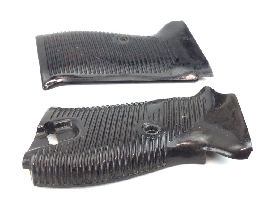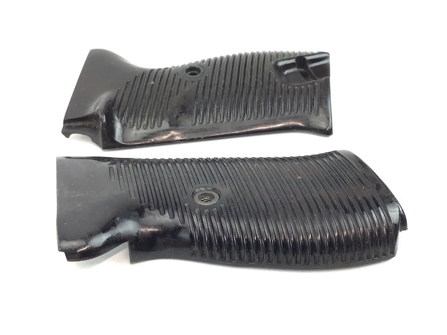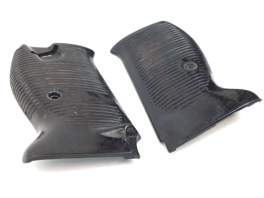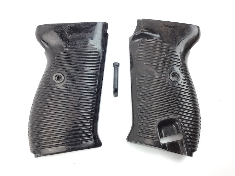 4/26/22 – These are original , early variation Walther P.38 grip panels. The grips are Walther Eagle 359 proof stamped on the interior of each panel. These do not have the “Russian cut” at the top the panels. These are excellent, all original grips with a deep brown color. Includes screw. Most appropriate for AC 40 and AC 41 P.38s.