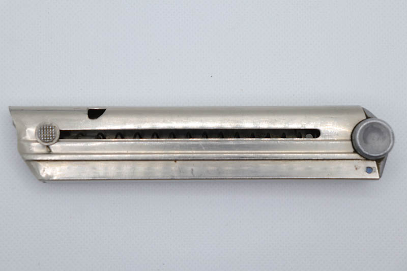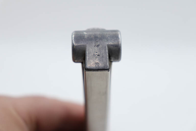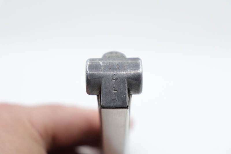 10/16/20 – This is an original and rare Eagle 63 Kriegsmarine luger magazine. The magazine has an early nickel tube and aluminum base. The base is serial numbered in the “c” block with a “+” sign and a droop winged eagle 63 proof stamp. It is stamped “N” 1368 at the front of the base. All original and correct with fully functional spring.