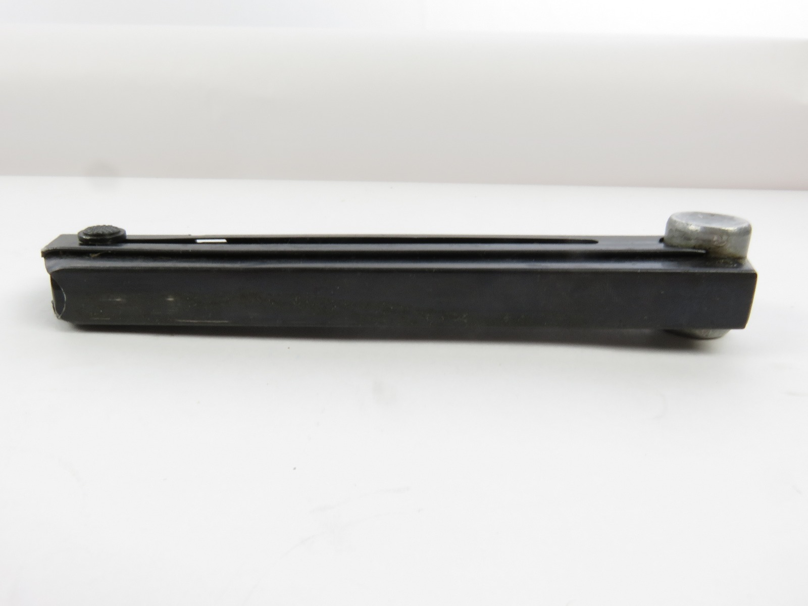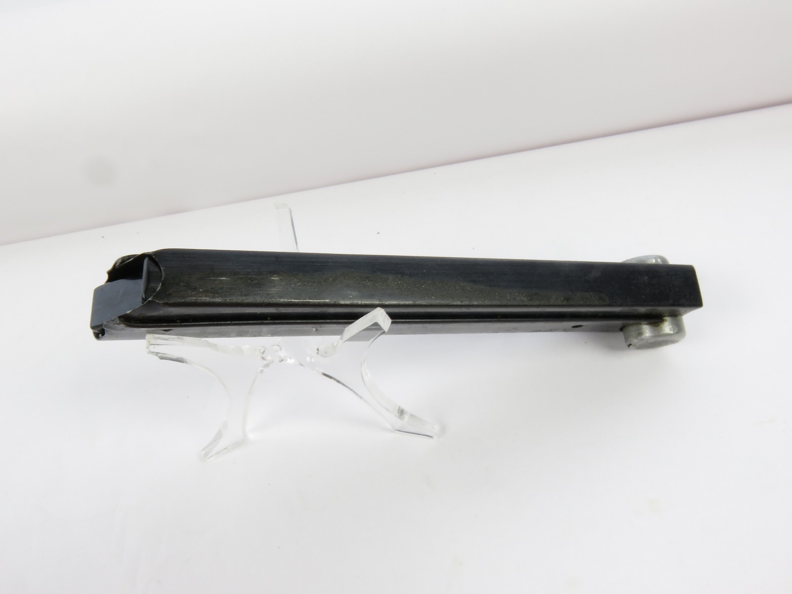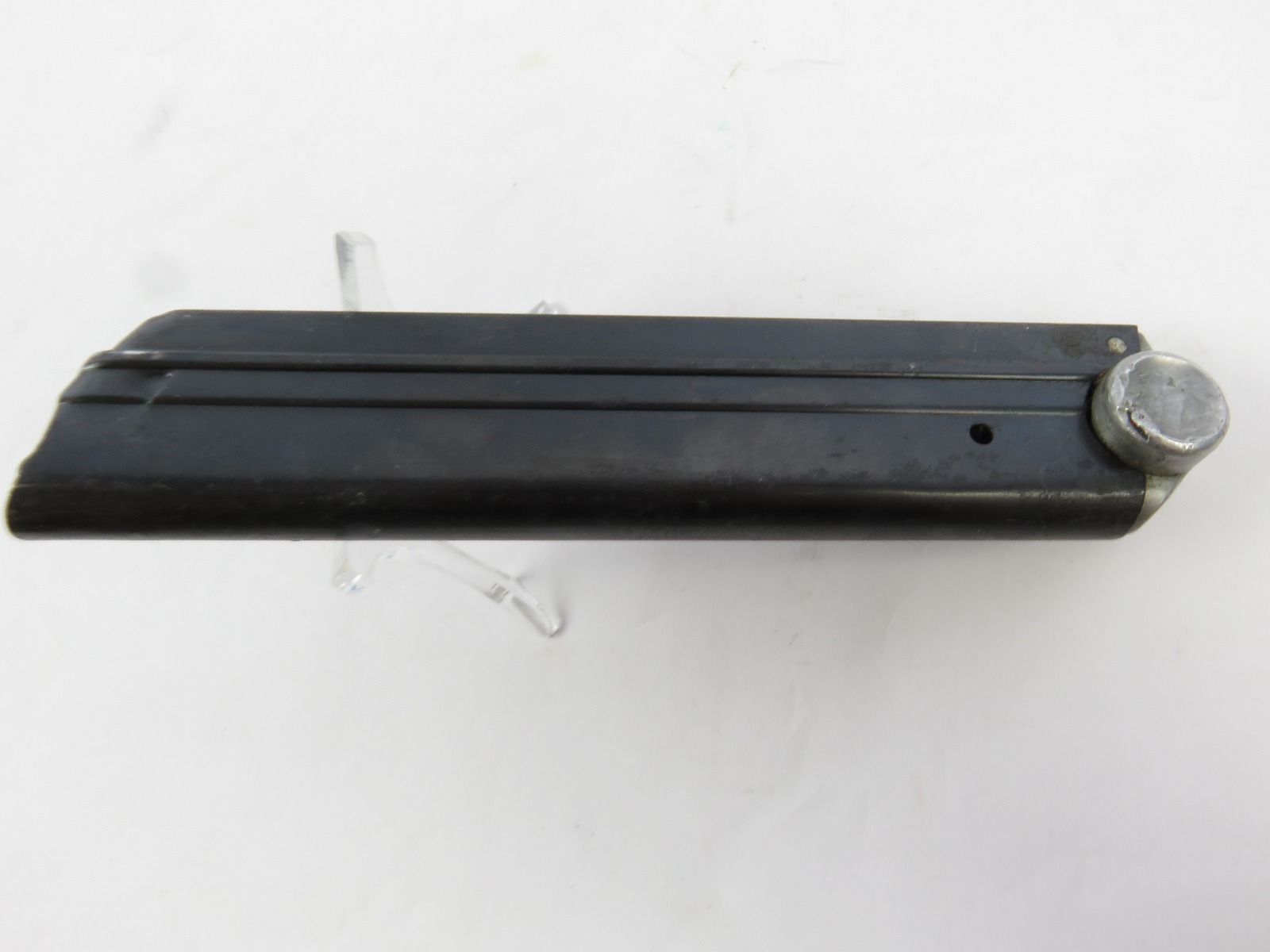 7/7/17 – This is an original WW2 production Luger magazine. The magazine base is aluminum with a serial number, “h” suffix, “+” sign, and an eagle 63 proof stamp. The serial number is oddly upside down. The magazine tube is blued and in great shape, but there is some minor residue/surface wear on the tube – we try to show this in photos. The spring is strong and fully functional.