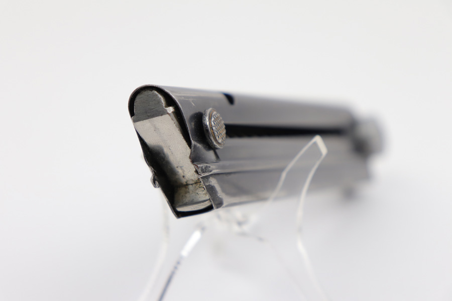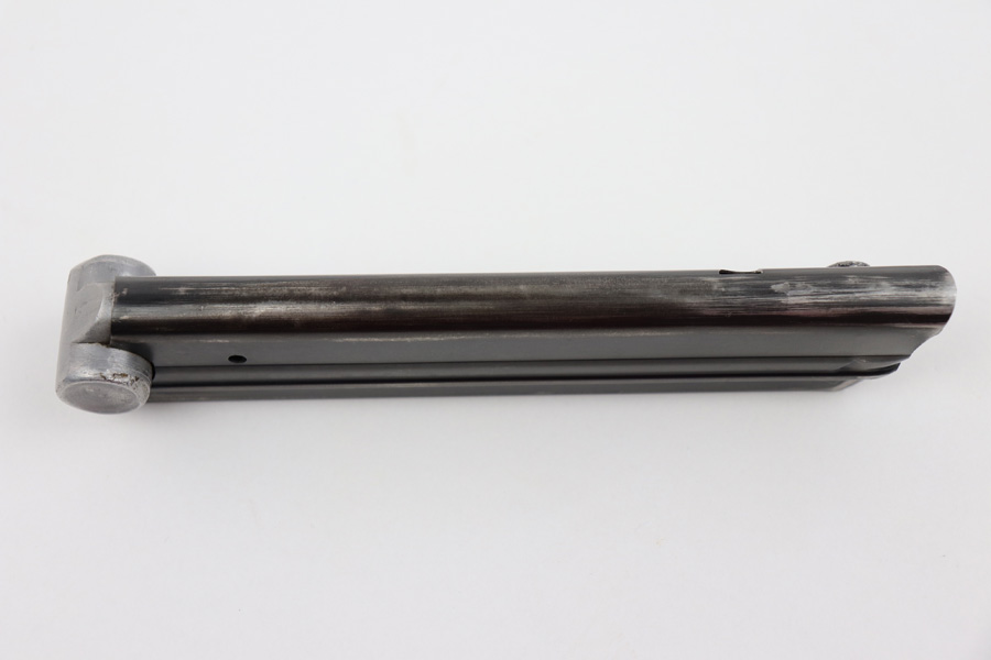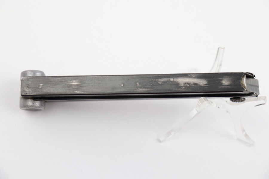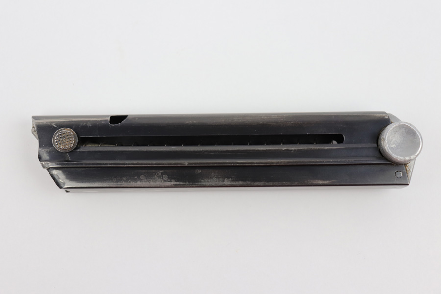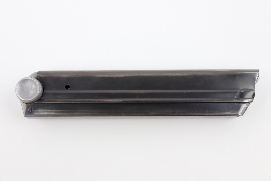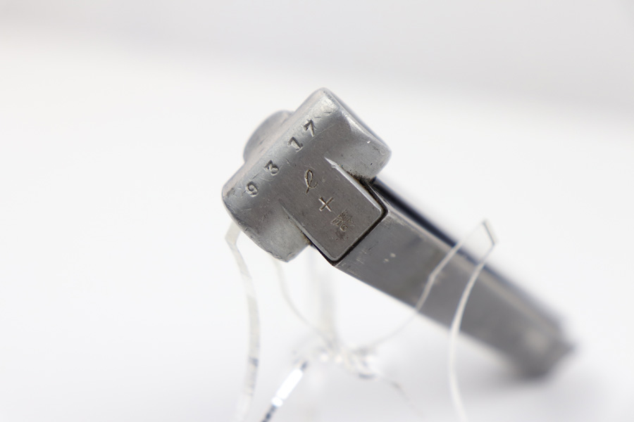 8/8/19 – This is an original Mauser eagle 63 proofed Luger magazine from WW2. The magazine has a serial number on the base “9317 L” with a “+” sign meaning this is the spare magazine. The frame has light bluing loss and some thinning to the finish, but no rust or pitting and a strong fully functional spring.