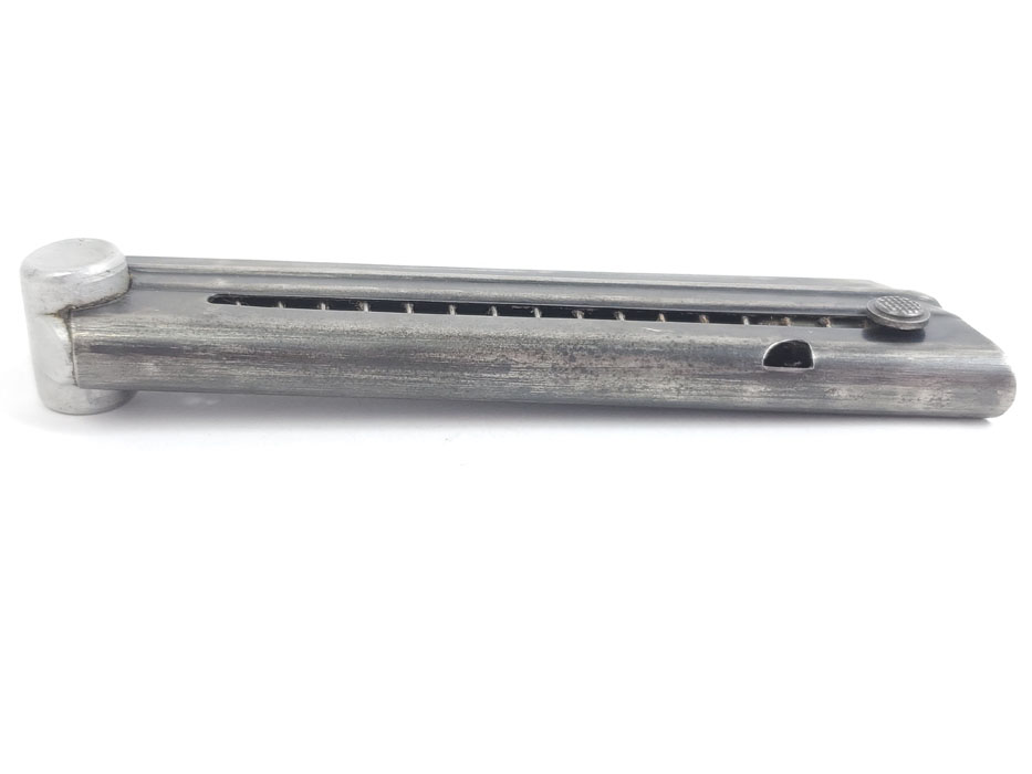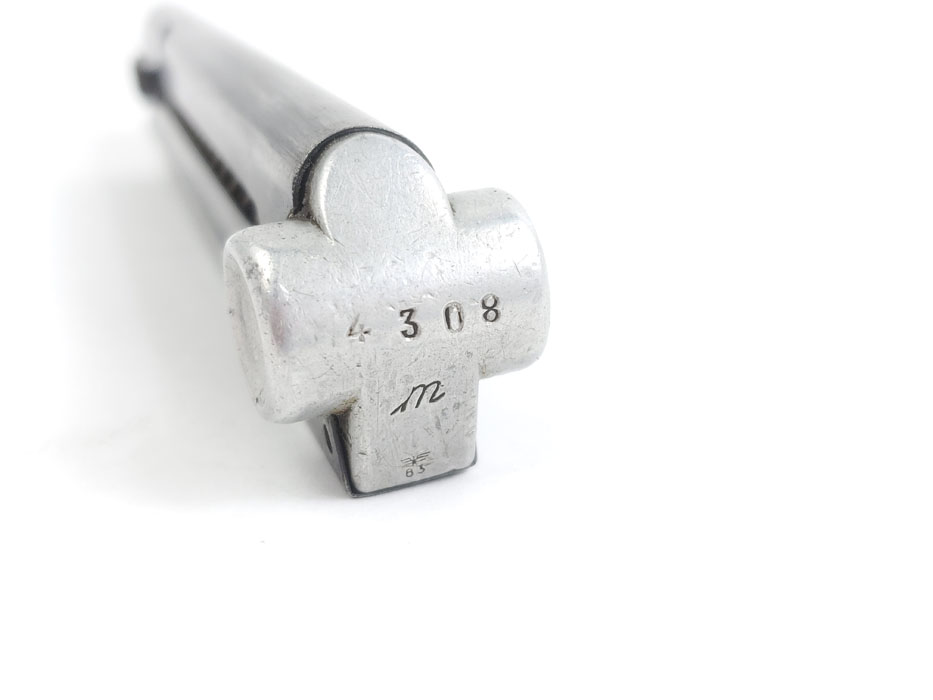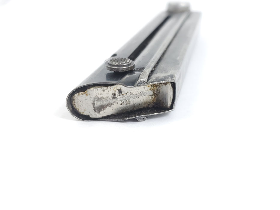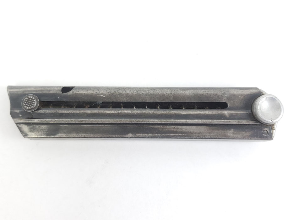 5/22/20 – This is an original Mauser eagle/63 Luger magazine. The magazine has some light bluing loss / thinning throughout the tube. The aluminum base is serial numbered with an eagle/63 proof stamp. Strong, fully functional spring.