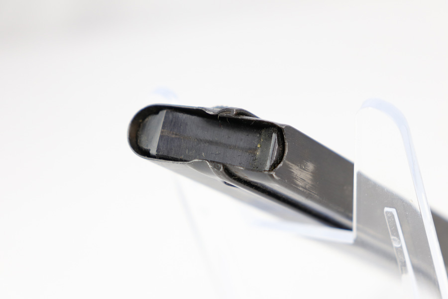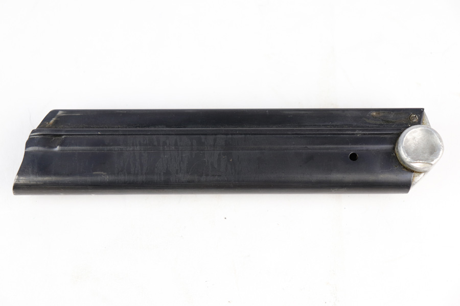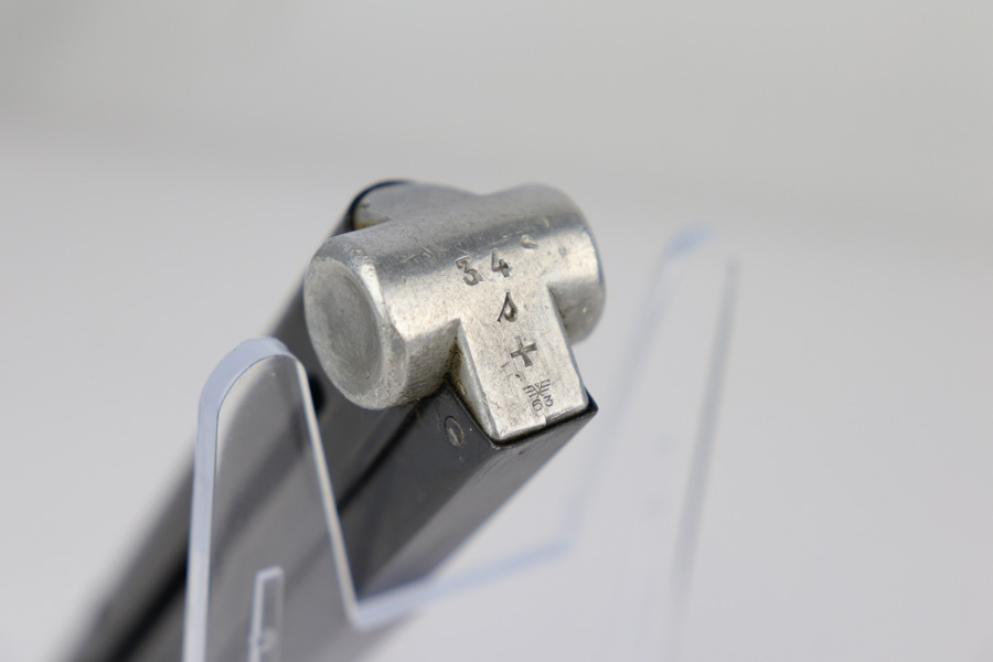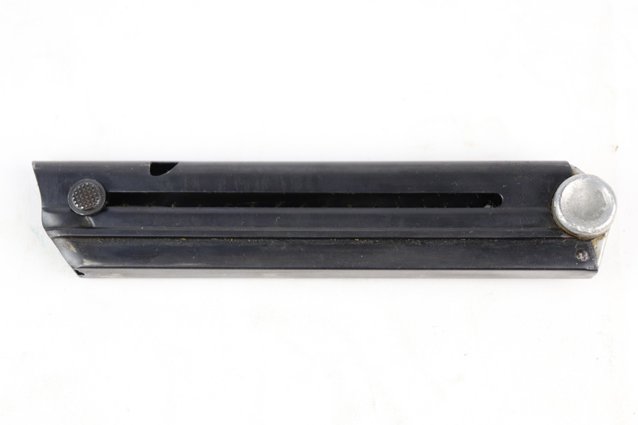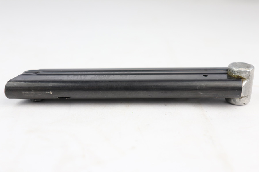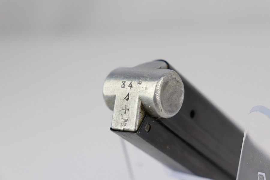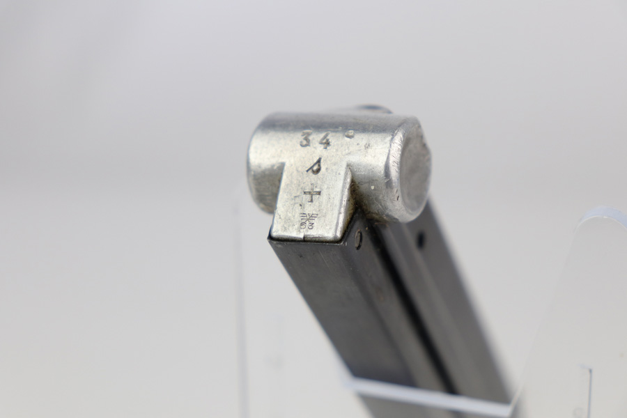 12/19/18 – This is an original Mauser eagle/63 proofed Luger magazine from WW2. The magazine is in excellent condition overall with minor surface wear that almost looks like residue on the tube. There is almost no bluing loss and definitely no signs of rust or pitting. The aluminum base is stamped with a scarce two-digit serial number. Also has an “s” suffix and “+” sign. Below those markings is the stick eagle 63 proof stamp. Strong spring, fully functional and guaranteed original.