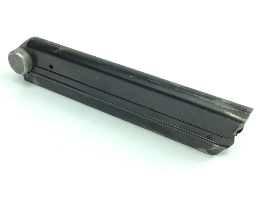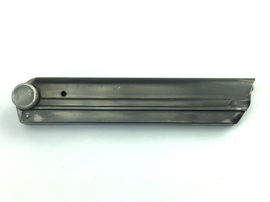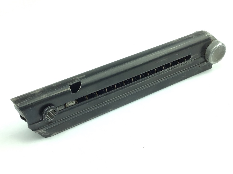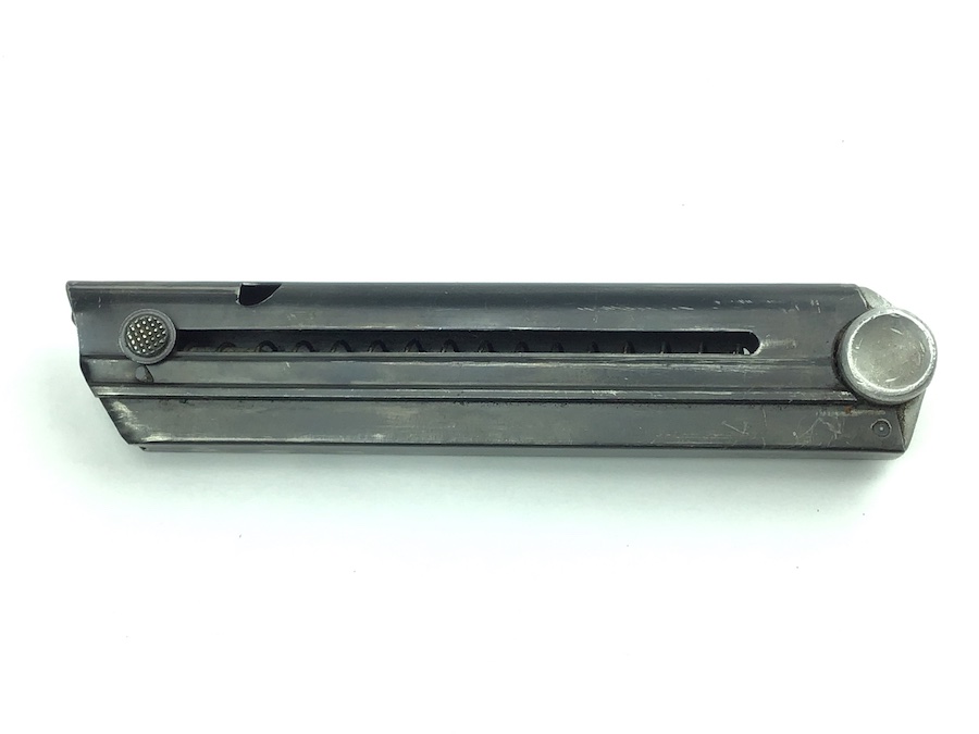 10/23/20 – This is an original WW2 production Mauser military Luger magazine. The magazine has a blued frame and aluminum base. The base is serial numbered and eagle/63 military proof stamped. This eagle/63 proof stamp was used from 1938 until the end of the war and is the most common Mauser proof. The magazine is in great condition with no rust or pitting. The spring is strong and fully functional. Guaranteed original.