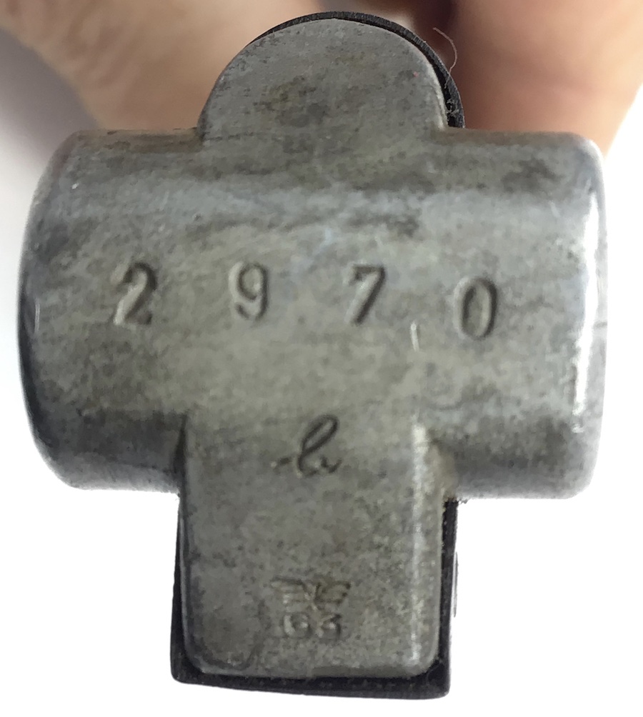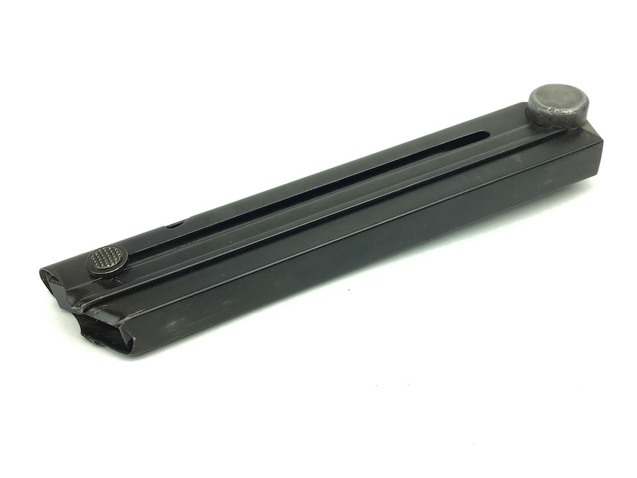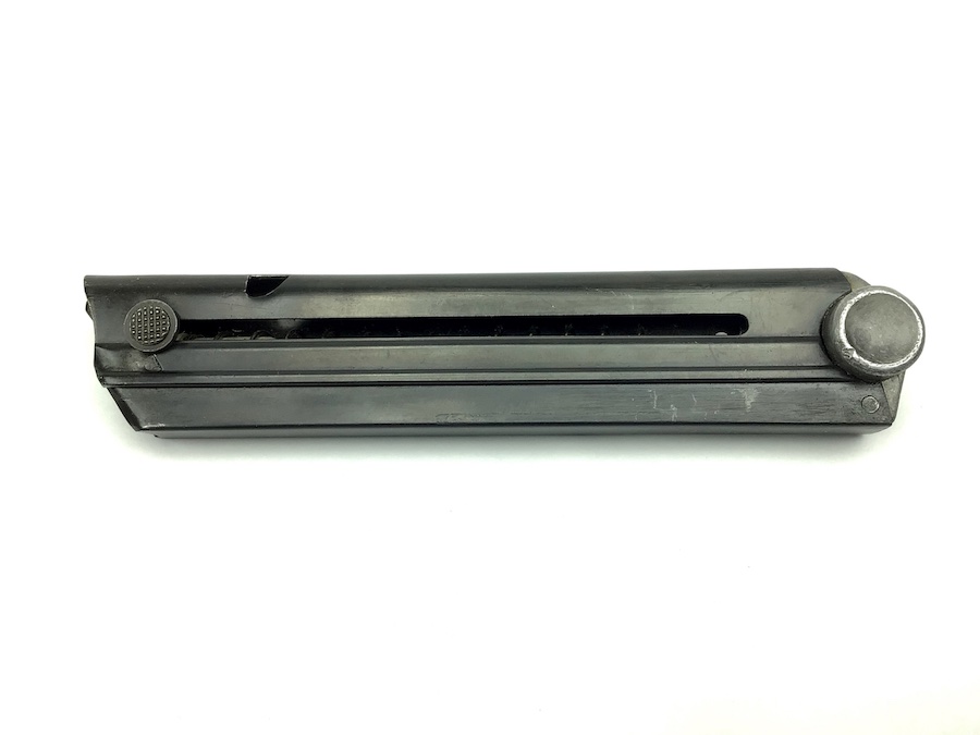 11/3/20 – This is an original WW2 production Mauser military Luger magazine. The magazine has a blued frame and aluminum base. The base is serial numbered and eagle/63 military proof stamped. This eagle/63 proof stamp was used from 1937 until the end of the war and is the most common Mauser proof. The magazine is in great condition with no rust or pitting. The spring is strong and fully functional. Guaranteed original.