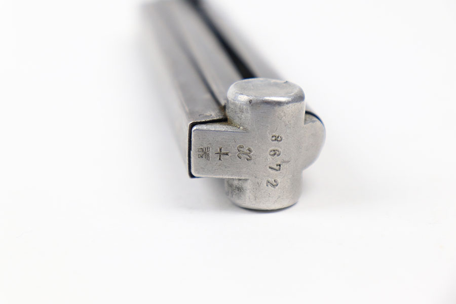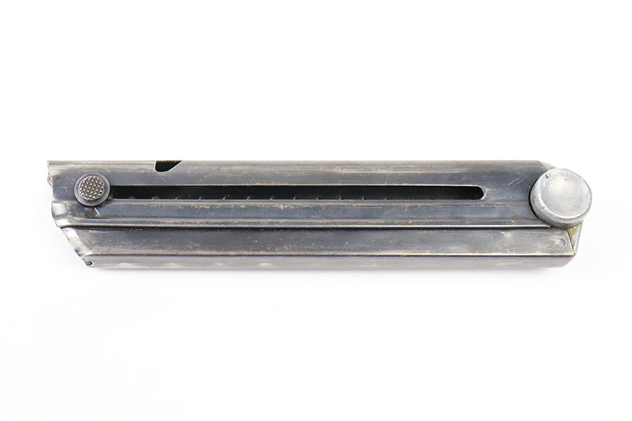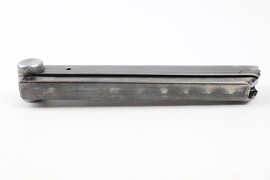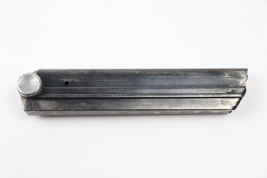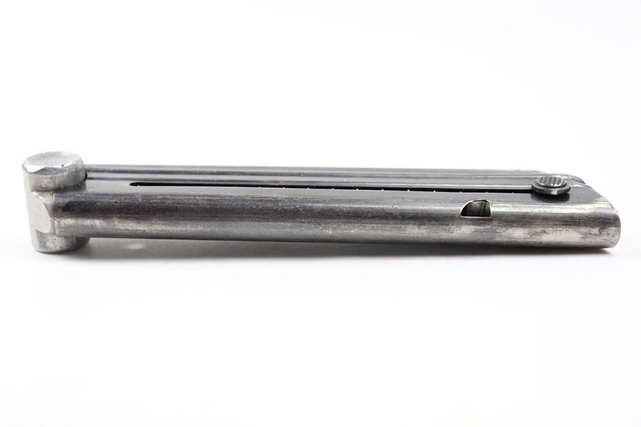 7/15/21 – This is an original Mauser eagle 63 Luger magazine from WW2. The base is serial numbered and eagle 63 proof stamped. The tube is blued with some mild wear throughout as shown. Strong, functional spring.