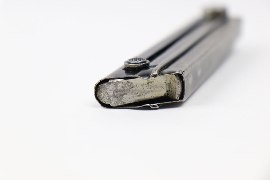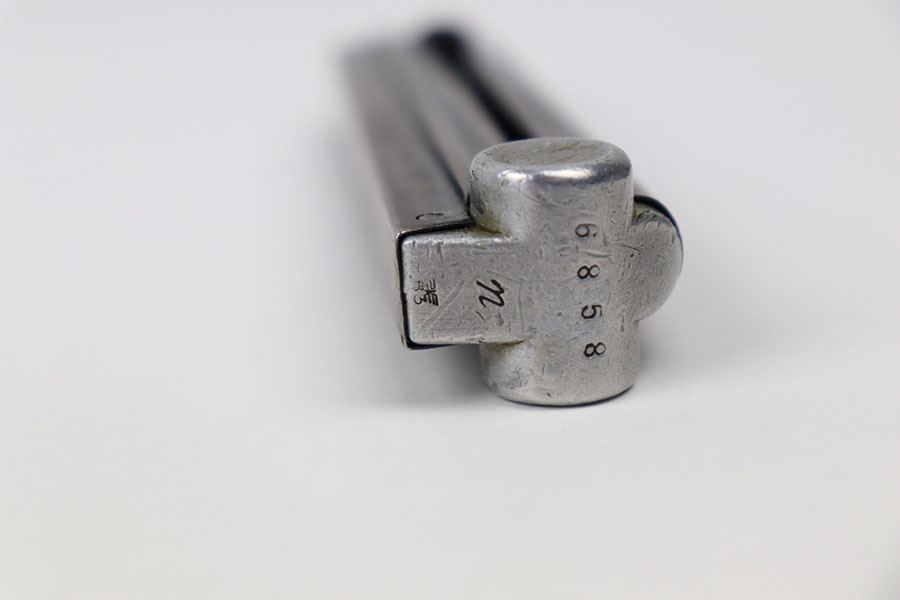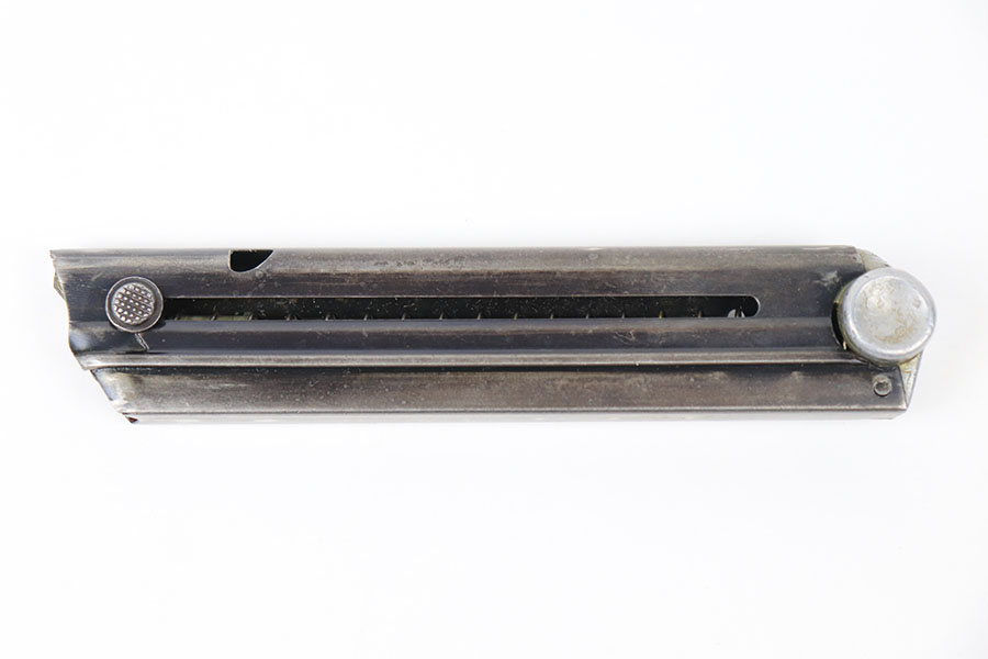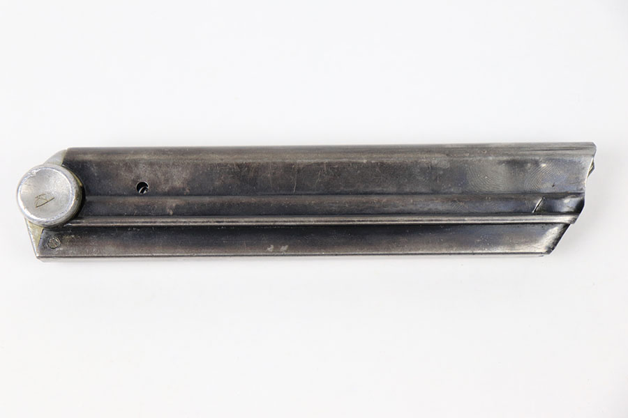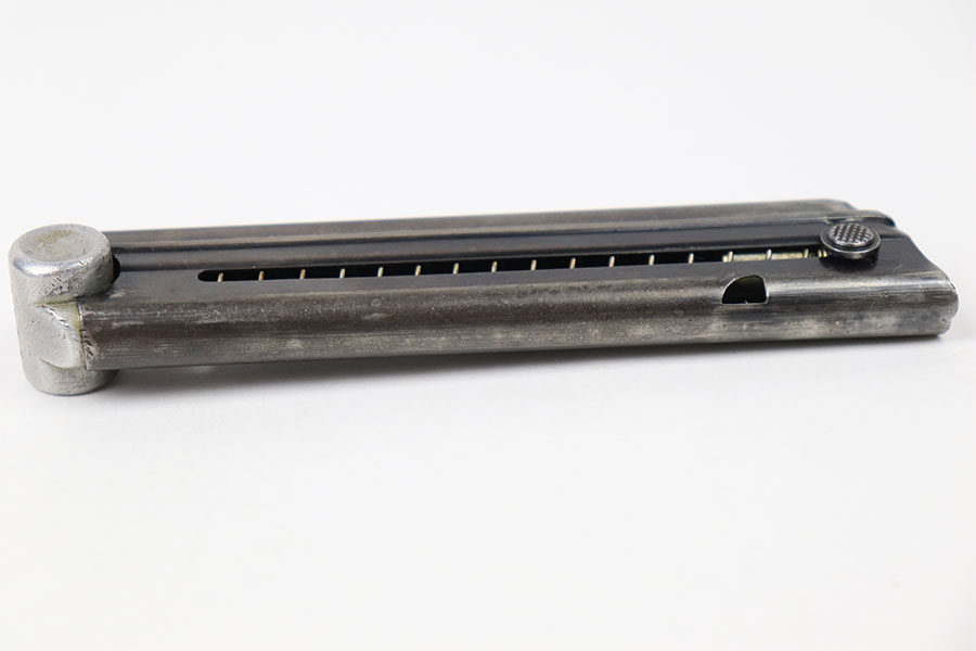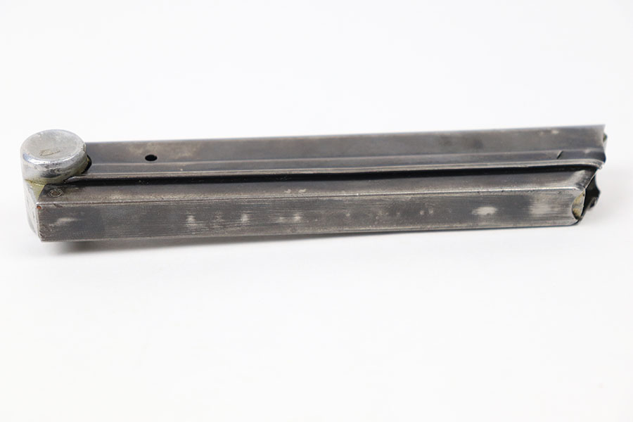 7/30/21 – This is an original Mauser eagle 63 proof stamped Luger magazine. A great wartime example with a blued tube and aluminum base. Some mild finish loss throughout the tube but no major rust or pitting. Strong, fully functional spring.
