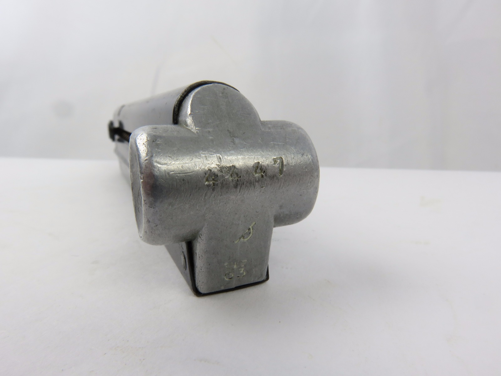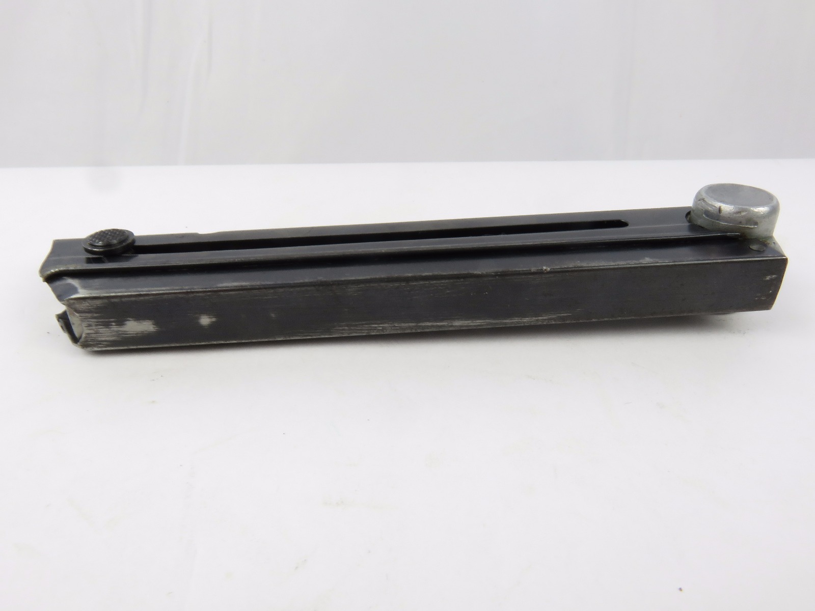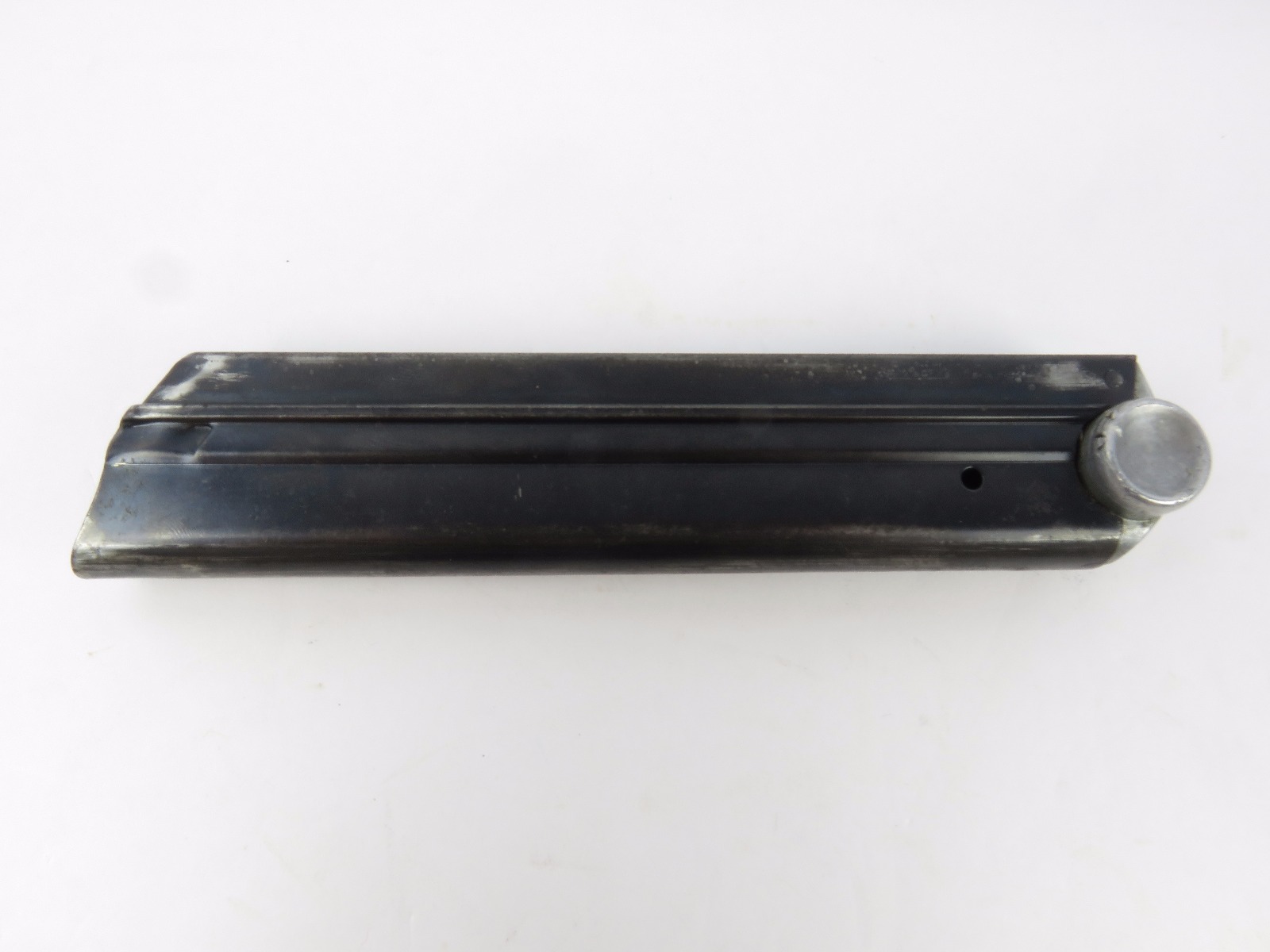 8/18/17 – This is an original WW2 production Mauser Luger magazine. The frame is blued and in good condition with some minor bluing loss. No rust or pitting. The base is aluminum and serial numbered “4447 s”. There is a large style stick winged eagle 63 proof stamp as well. Guaranteed original and fully functional.