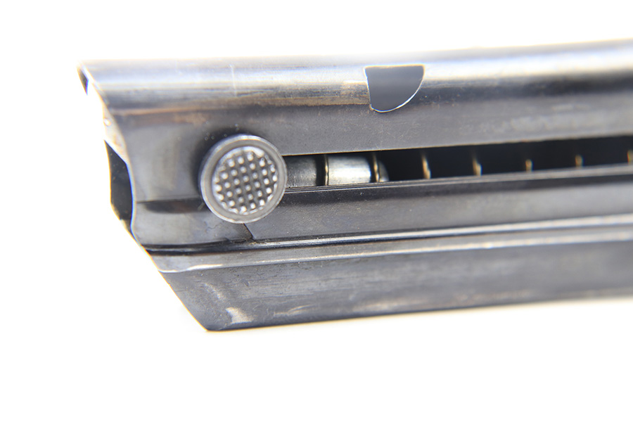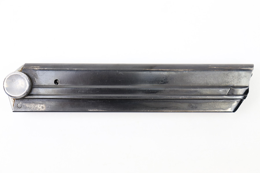 6/21/22 – This is an original Mauser Luger magazine from WW2. The magazine has a blued tube with minimal finish loss and no rust or pitting. The aluminum base is serial numbered and eagle/63 Mauser proof stamped. The spring is strong and functional.