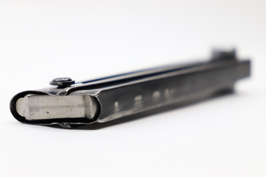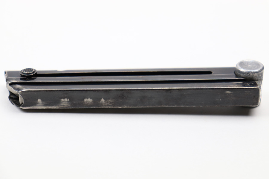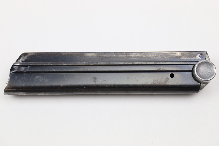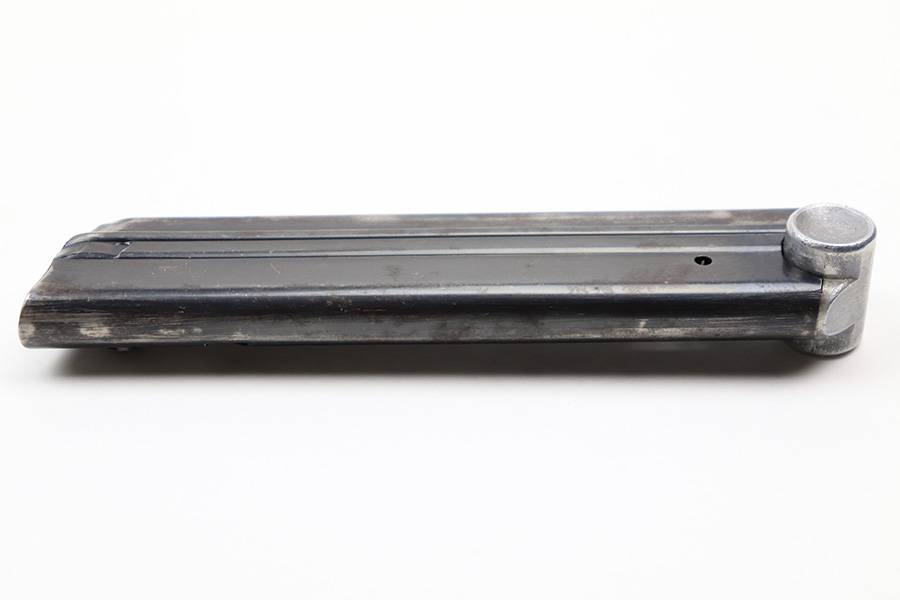 7/6/22 – This is an original Mauser Eagle 63 proofed Luger magazine from WW2. The magazine tube is blued and in great condition despite some spotty patina and mild finish loss. There’s no rust or pitting. The aluminum base is serial numbered and military proof stamped. Fully functional spring.