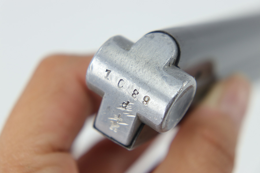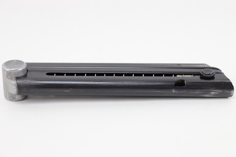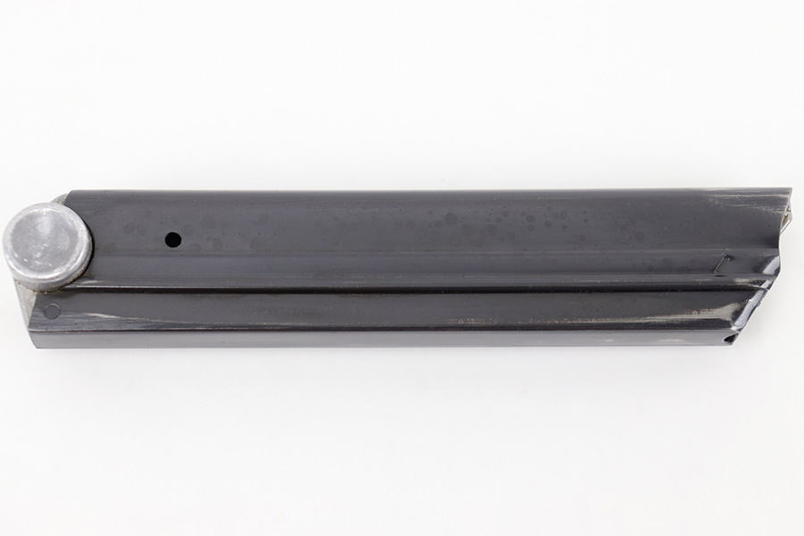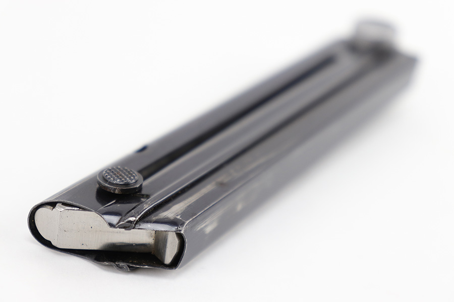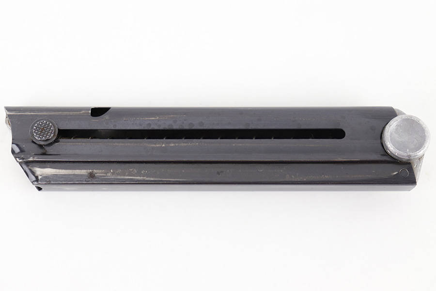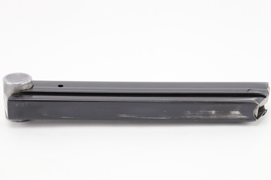 7/18/23 – This is an original WW2 Mauser Luger pistol magazine. The magazine has a blued tube and aluminum base. The base is serial numbered 1089d with a plus sign and eagle 63 military proof stamp. There’s some mild ding marks on the base but no major issues. The tube is blued and in great shape with minimal finish loss. No rust or pitting and a fully functional spring.