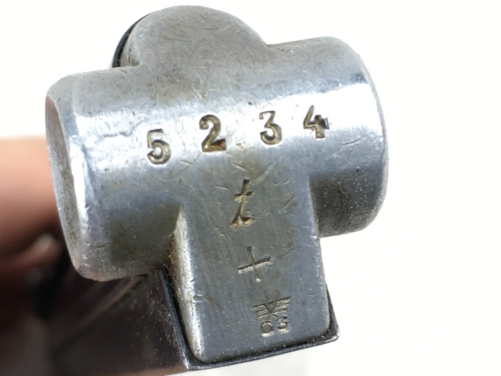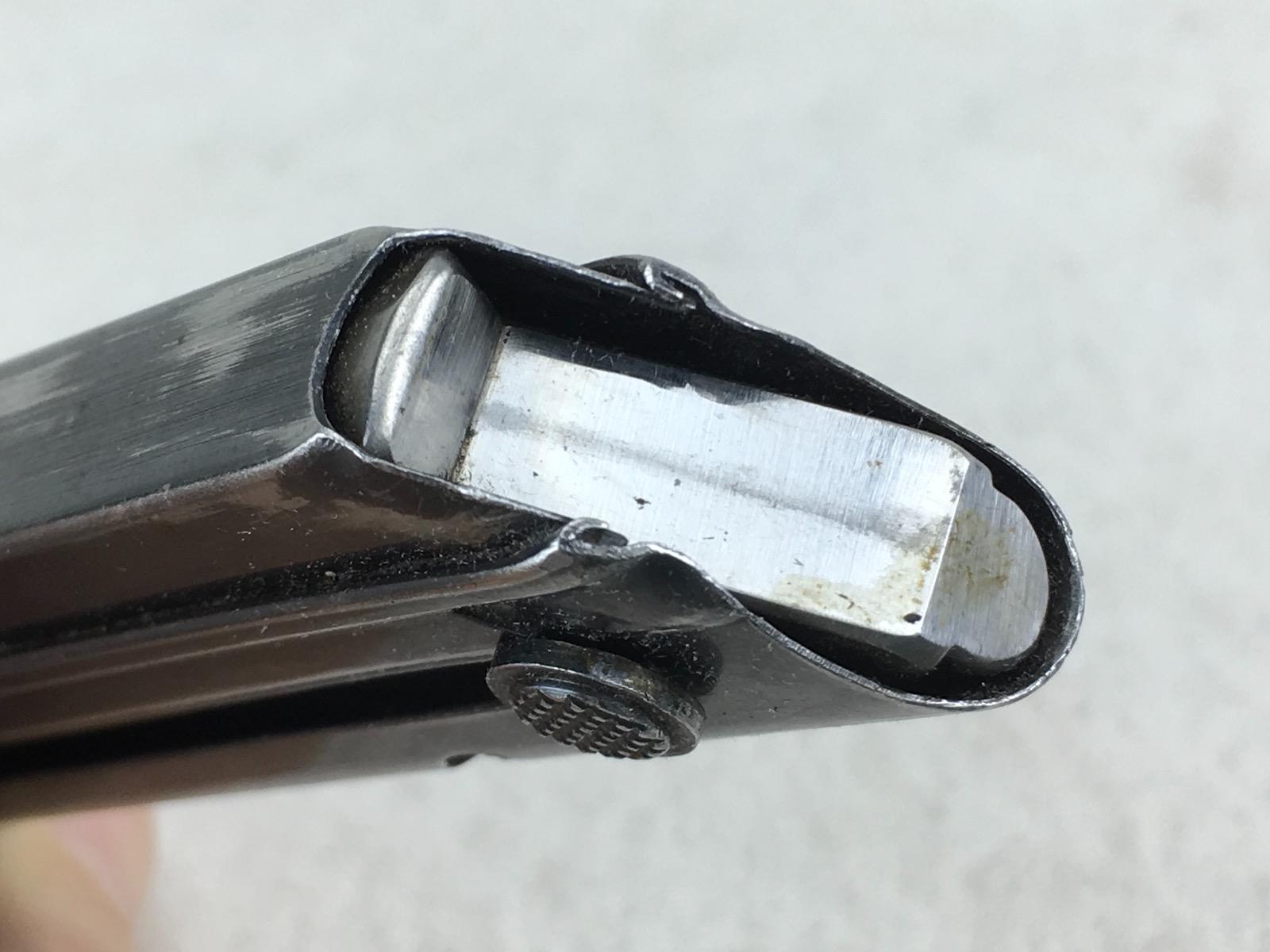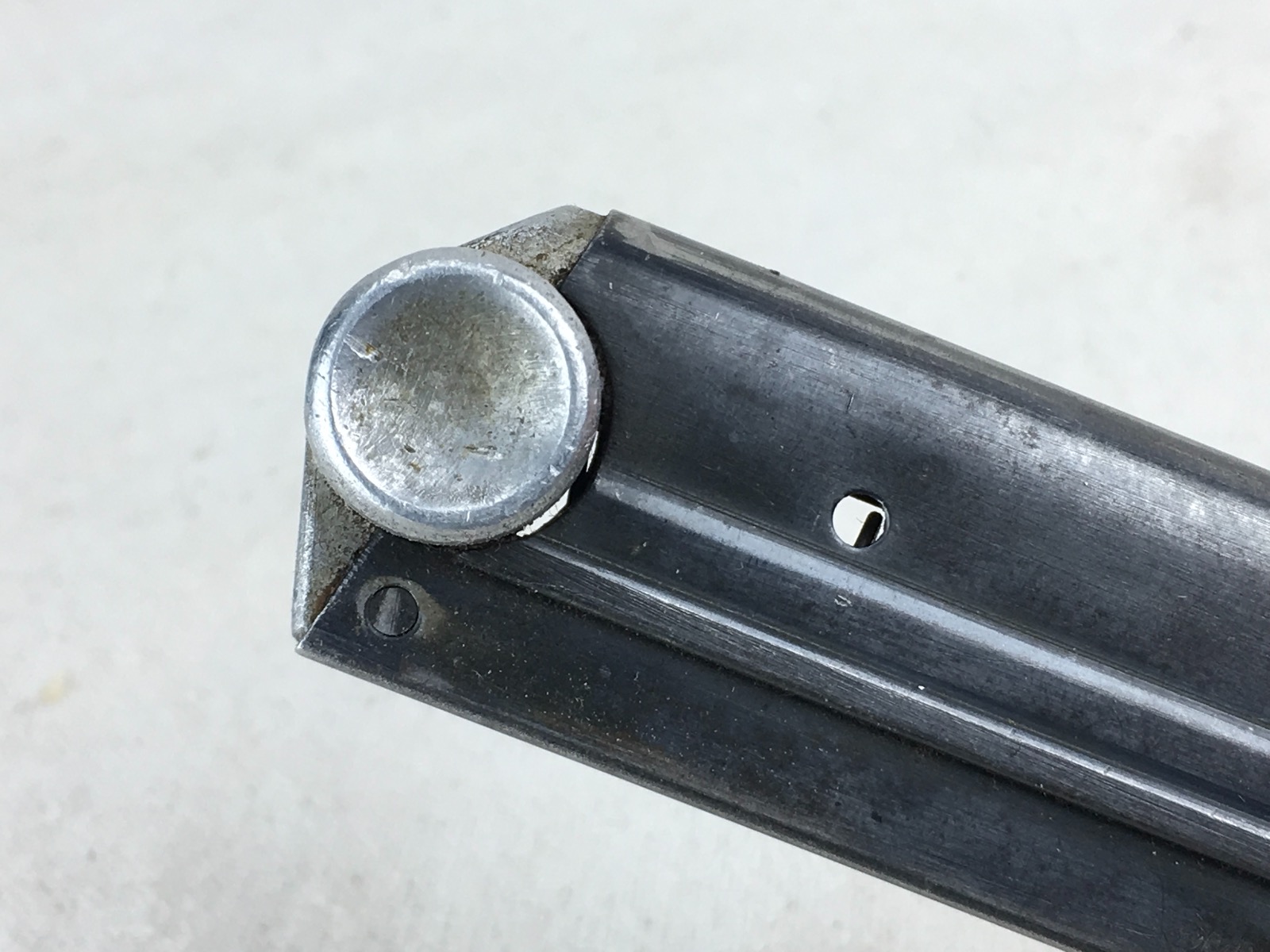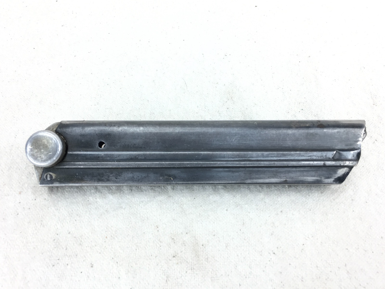 11/27/18 – This is an original WW2 production Mauser Luger magazine. The frame is blued and in great condition with minimal wear. No rust or pitting. The base is aluminum and serial numbered “5234 t”. There is stick winged eagle 63 proof stamp and “+”. Strong, smooth functional spring. Guaranteed original and fully functional.