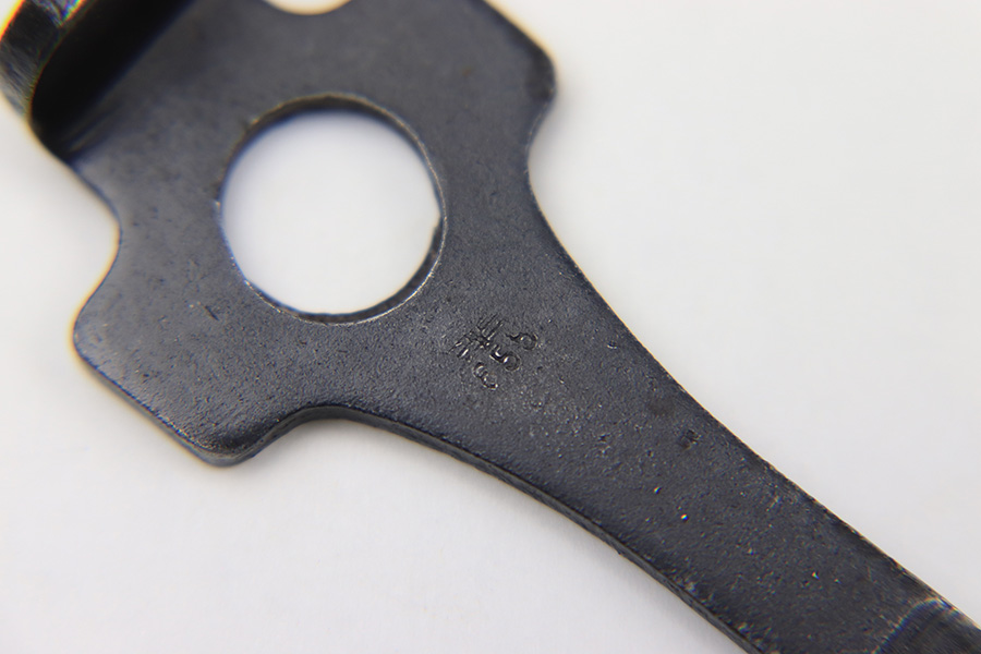 7/19/22 – This is an original Mauser luger tool from WW2. The tool is stamped on the front metal with a straight winged eagle 63 proof. The tool has some dark patina and aging mixed throughout the original finish. Good overall condition.