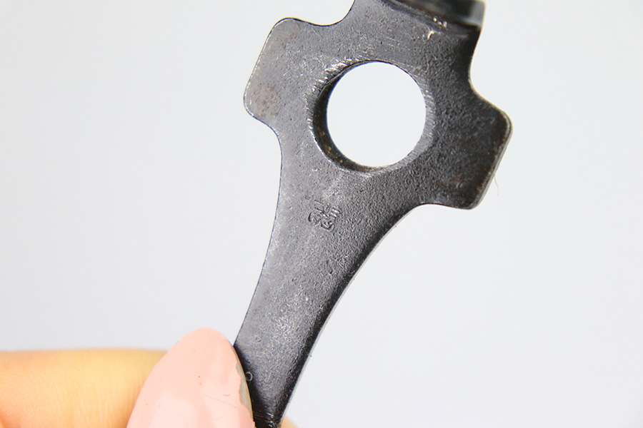 12/12/22 – This is an original WW2 production Mauser Luger tool. Stamped with a straight winged eagle 63 proof stamp on the front of the tool. No other markings or stamps. No rust or pitting, in great overall condition.