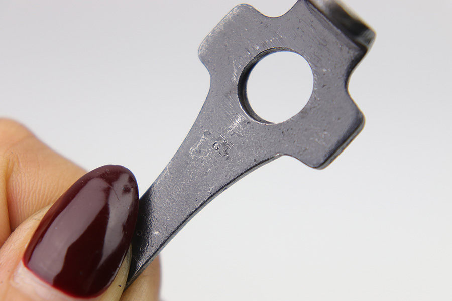 1/10/23 – This is an original Mauser Luger tool from WW2. Stamped on the front with a stick winged eagle 63 proof stamp. No other markings. Great overall condition with most of the original finish still intact.