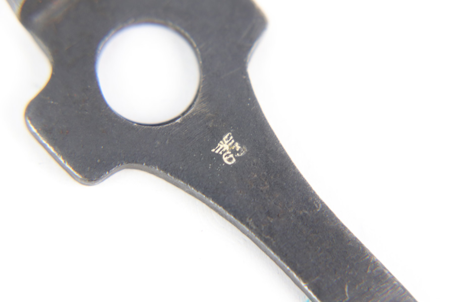 1/11/19 – This is an original Mauser Luger tool from WW2. The front of the tool is stamped with a Mauser stick winged eagle 63 proof. This was a military proof used from 1937-1942. Guaranteed original and authentic.