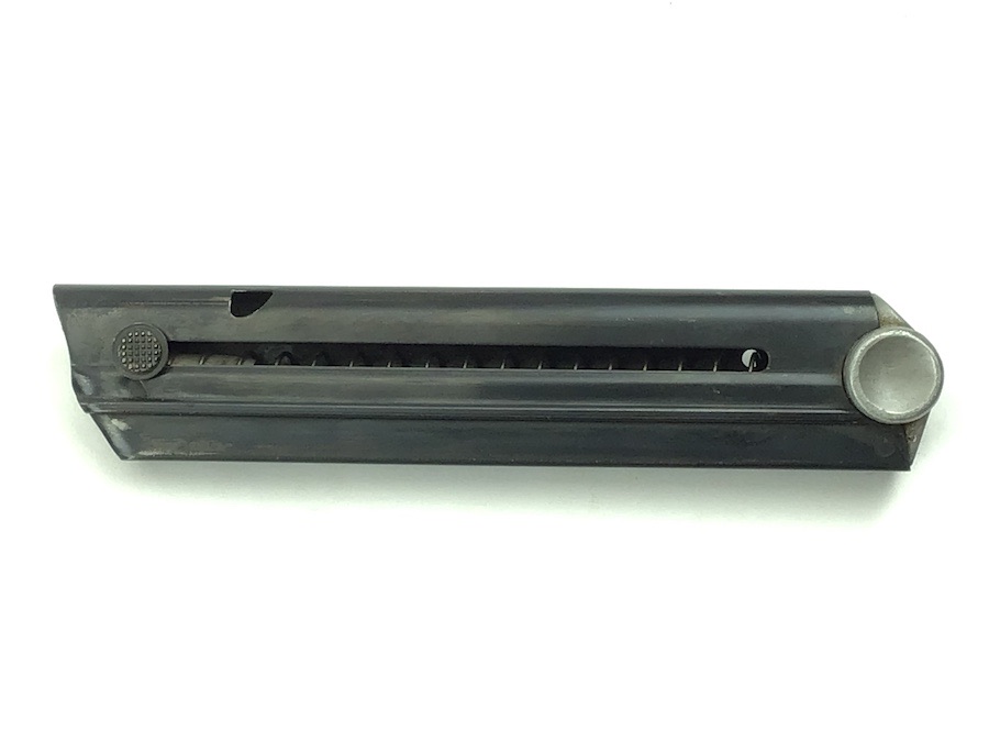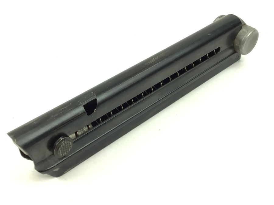 7/25/22 – This is an original WW2 era Mauser eagle/655 Luger magazine. The aluminum base of the magazine is stamped with a German eagle/655 military proof stamp. There is also a serial number stamped “5613”. The frame is excellent with no rust or pitting. Nice strong spring.