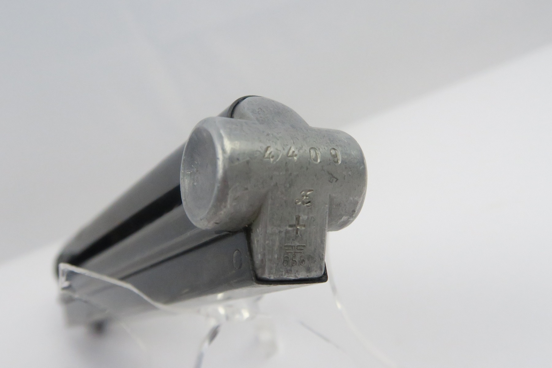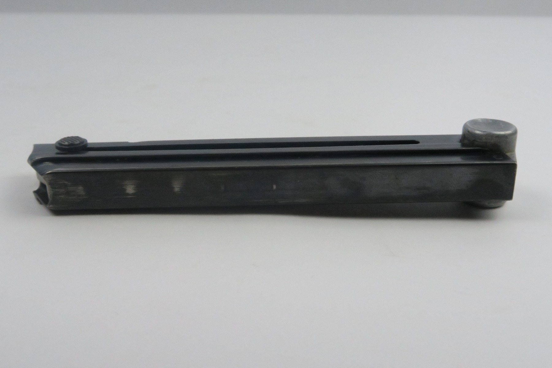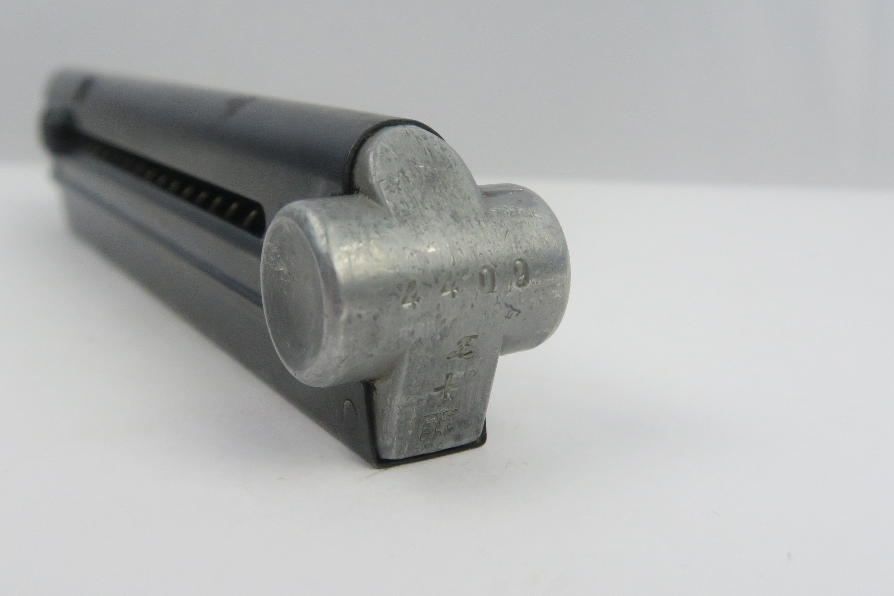12/27/17 – This is an original eagle 655 proofed Mauser Luger magazine. The magazine has a blued frame and aluminum base. The frame has some light bluing loss, but no rust or pitting. The base is serial numbered with a “z” suffix and a “+” sign. Guaranteed original and fully functional.