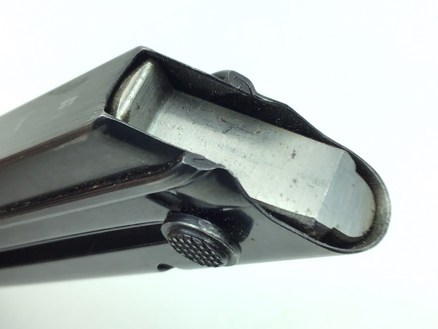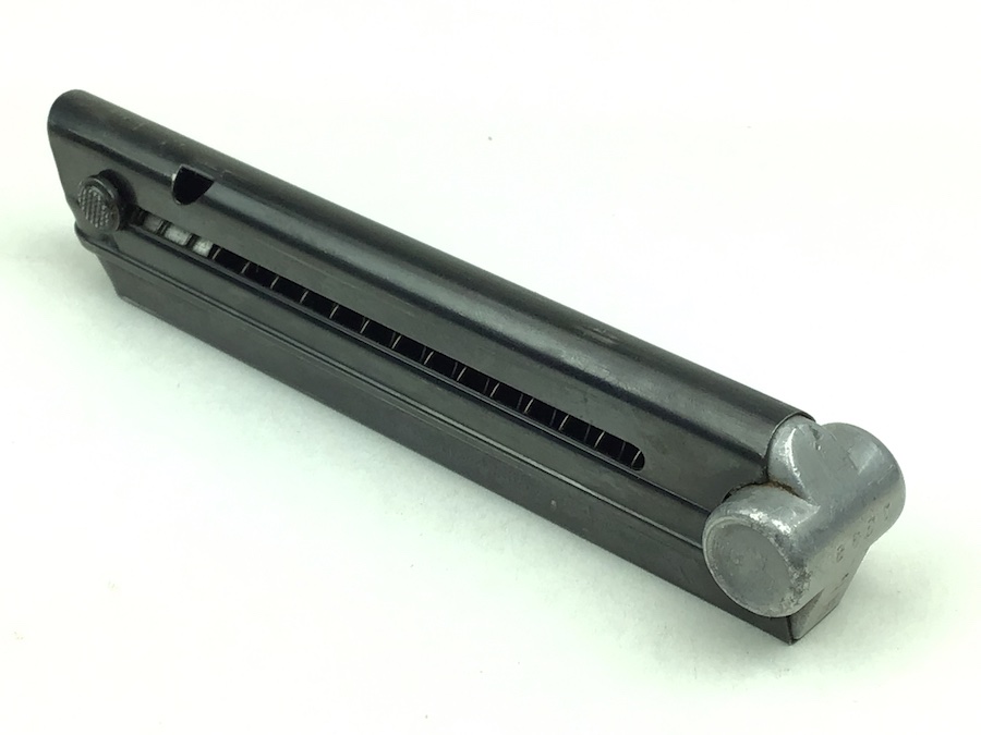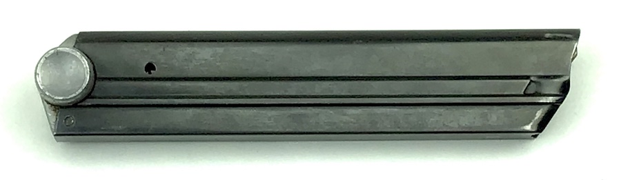 2/27/20 – This is an original WW2 era Mauser eagle/655 Luger magazine. The aluminum base of the magazine is stamped with a German eagle/655 military proof stamp. There is also a serial number stamped “8656 c”. The frame is excellent with no rust or pitting. Nice strong spring. Guaranteed original and fully functional.