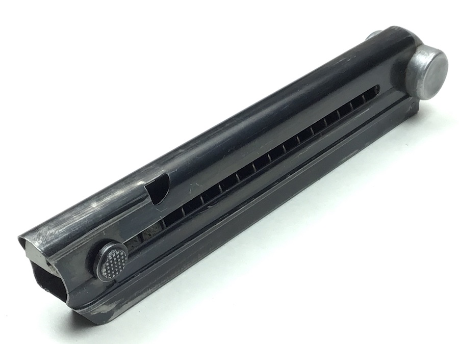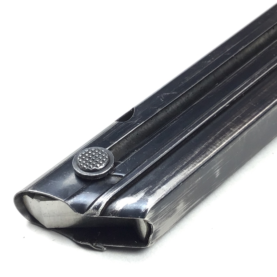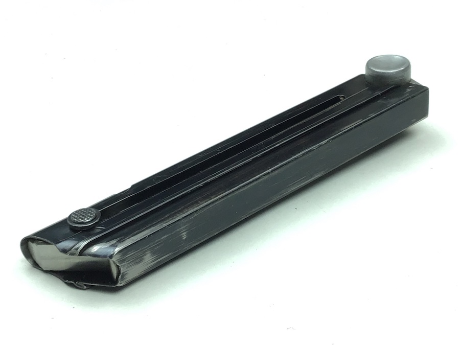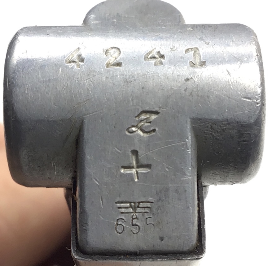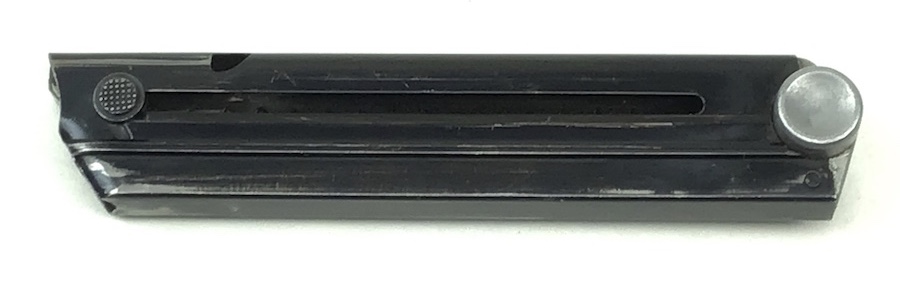 3/24/20 – This is an original WW2 era Mauser eagle/655 Luger magazine. The aluminum base of the magazine is stamped with a German eagle/655 military proof stamp. There is also a serial number stamped “4241”. The frame is excellent with no rust or pitting. Nice strong spring. Guaranteed original and fully functional.