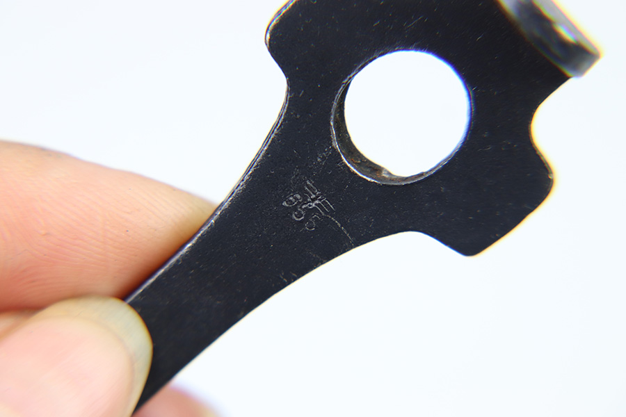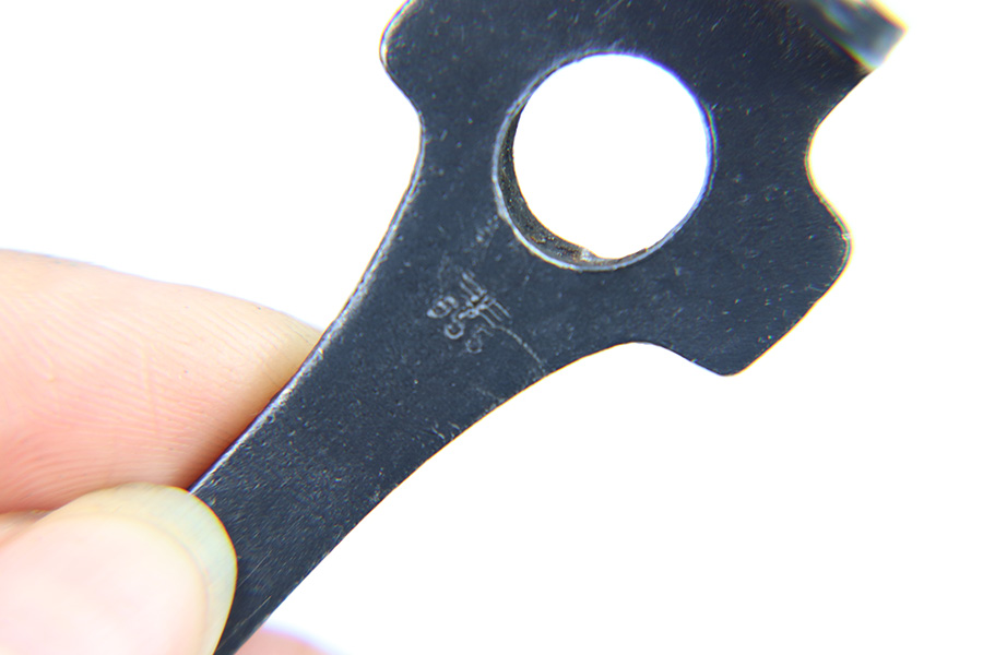10/20/22 – This is an original Mauser luger tool from WW2. The tool is marked on the front with a eagle 655 proof mark. The metal has retained most of its original finish but shows some thinning/finish loss on the lower edges and the grip screw head.