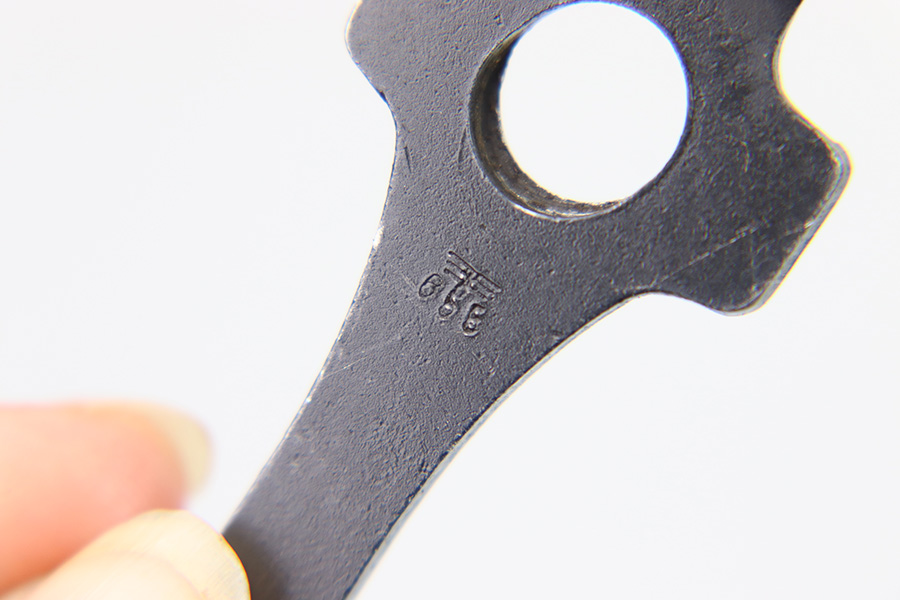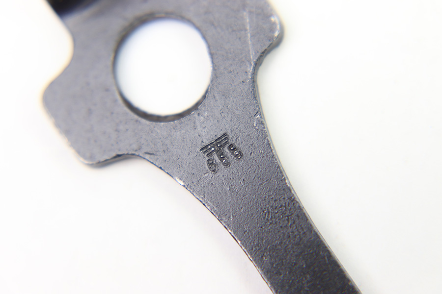 10/24/22 – This is a great example of an original Mauser Luger tool from the later half of WW2. The metal has maintained a majority of its finish, showing only minor thinning/finish loss on some of the edges and the screw tool head. The front of the tool features an eagle 655 proof mark. No other markings or stamps.