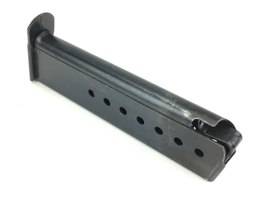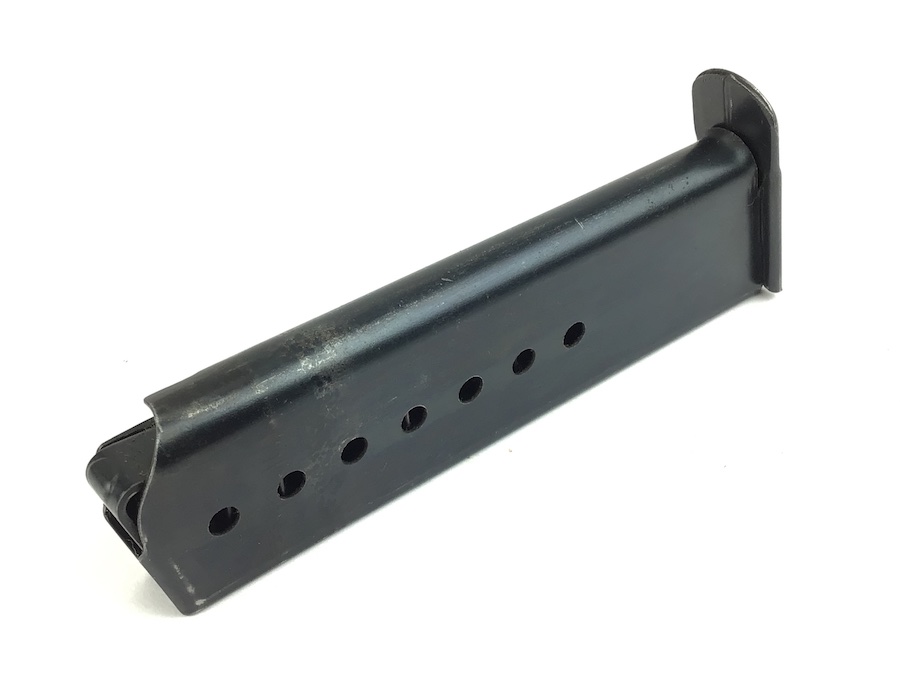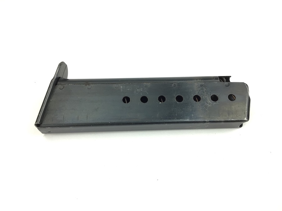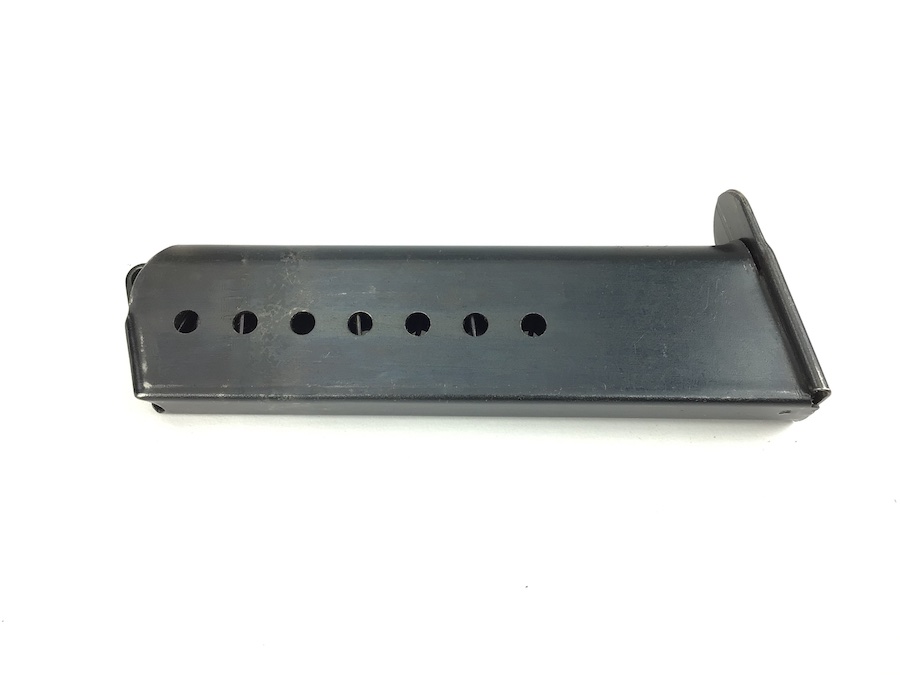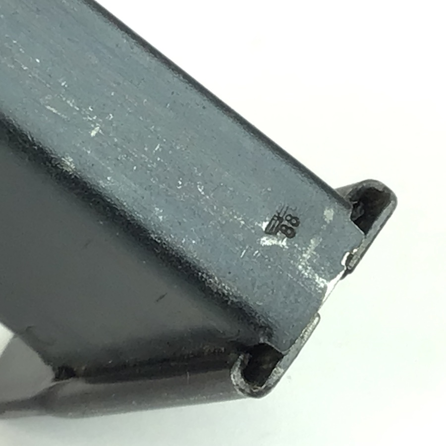 10/22/21 – This is an original CYQ P.38 magazine from WW2. The magazine has no markings except for a small eagle/88 proof stamp on the bottom of the spine. The blued finish is in great shape but there is some thinning throughout. Spring is fully functional.