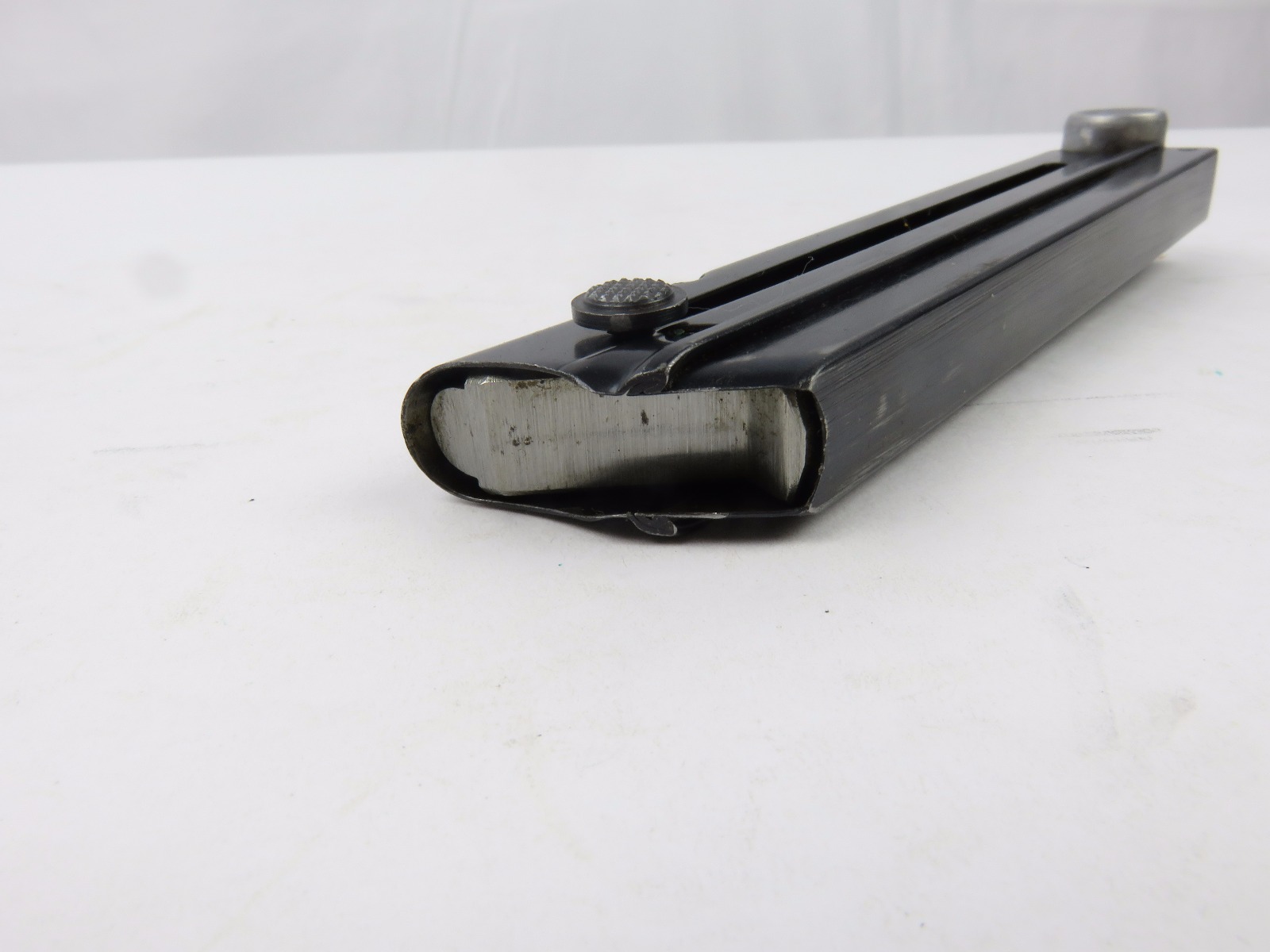 8/9/17 – This is an extremely rare Police eagle/L proofed Luger magazine from WW2. The magazine is in beautiful, all original condition with no rust or pitting, a strong spring, and clean base. The base has a serial number and ealge/L proof stamp. Guaranteed original and authentic.