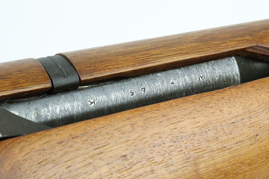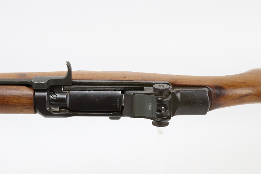 3/20/24 – This is an early, 5-digit Springfield M1 Garand. The serial number dates to about February of 1930. The gun has been reworked, and many of the parts have been replaced. Import mark on the barrel. Barrel is dated 1957. Replacement wood stock. There is obvious finish loss on the gas tube and some pin-pricking under the finish on the receiver. Minty wood. The bore has decent rifling, but there is spotty oxidation and pitting throughout. The action is very tight – hard to get the op rod back.