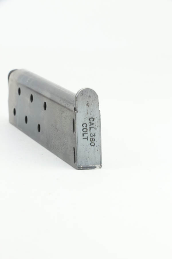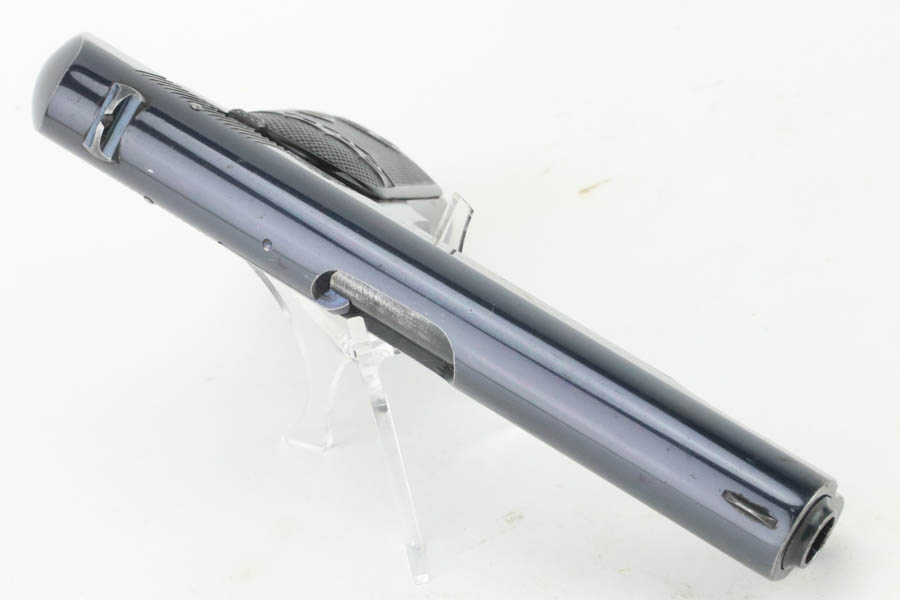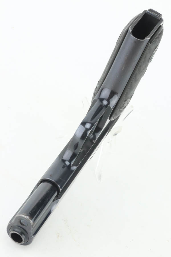 8/7/24 – This is an excellent example of an early Colt Model 1908 Pocket Hammerless, manufactured in 1911 and chambered in .380 ACP. It has retained about 96% of its original high polish finish. There is minor muzzle and high edge wear with tiny handling marks and surface scratches throughout. Fire-bluing on the small parts. Fitted with excellent black hard rubber grips. The bore has great rifling, but there is some very light freckling in the grooves.