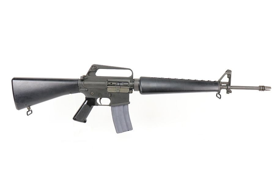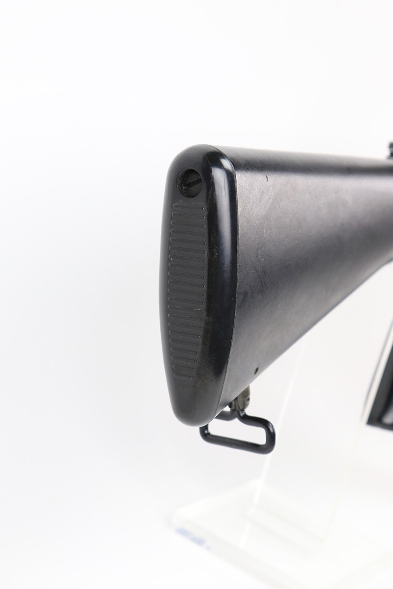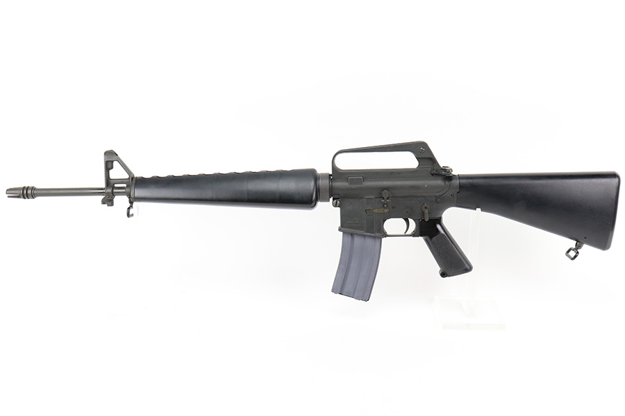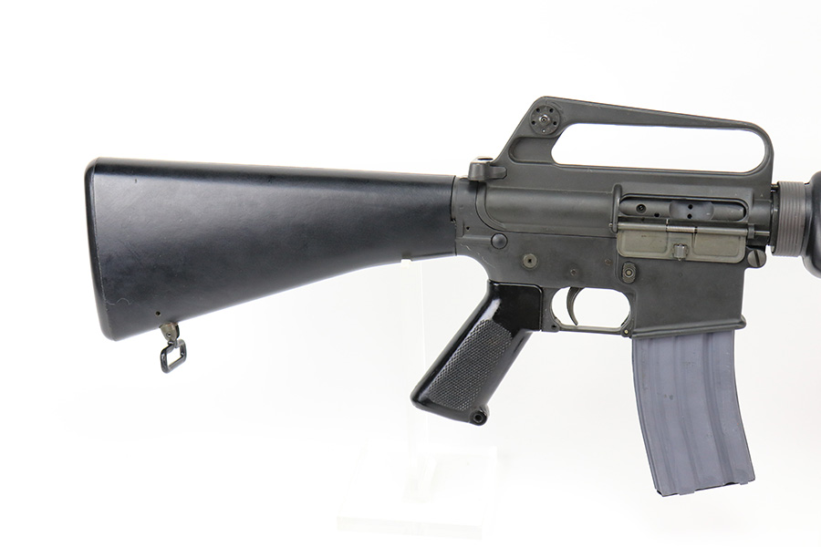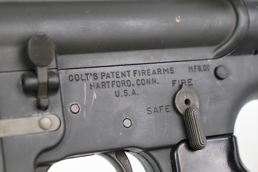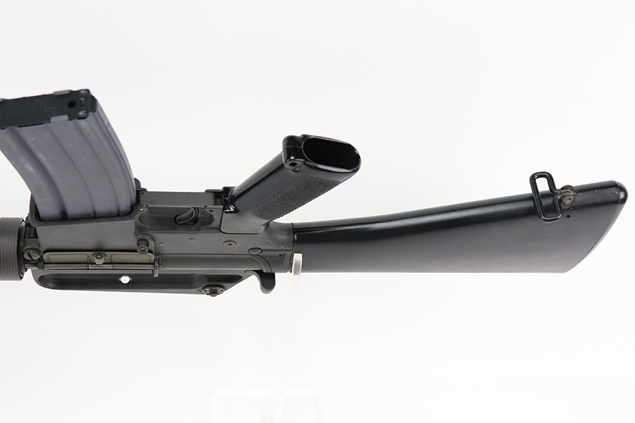4/21/22 – This is a fantastic example of a very early and desirable Colt SP1 that predates the Vietnam War. Dates to either one of the last made in 1965, or first in 1966. All original with 98-99% finish remaining, just very minor surface scuffing. Barrel is ‘M’ marked, and the early barrel is marked ’12’ on underside, indicating it has the 1×12 inch twist. Three prong flash hider is present, as is bayonet lug. Early triangular handguards and early style buttstock, with no provisions for internal storage. Minty bore and C&R eligible.