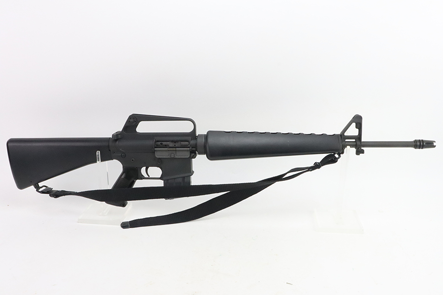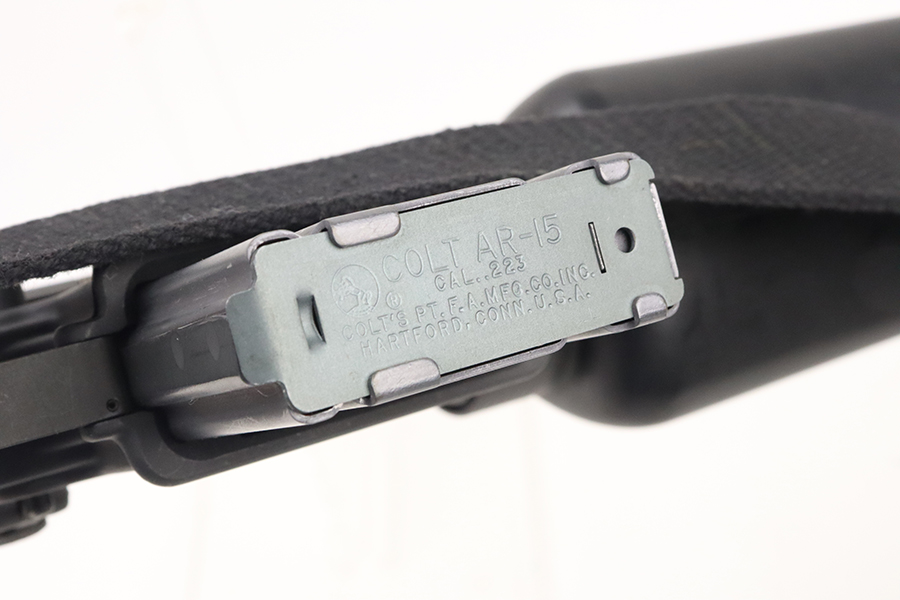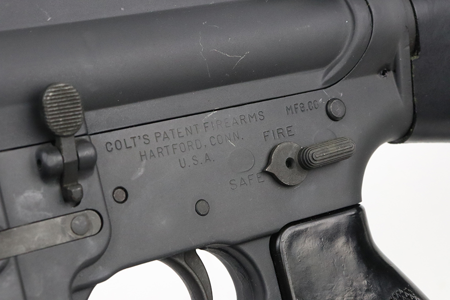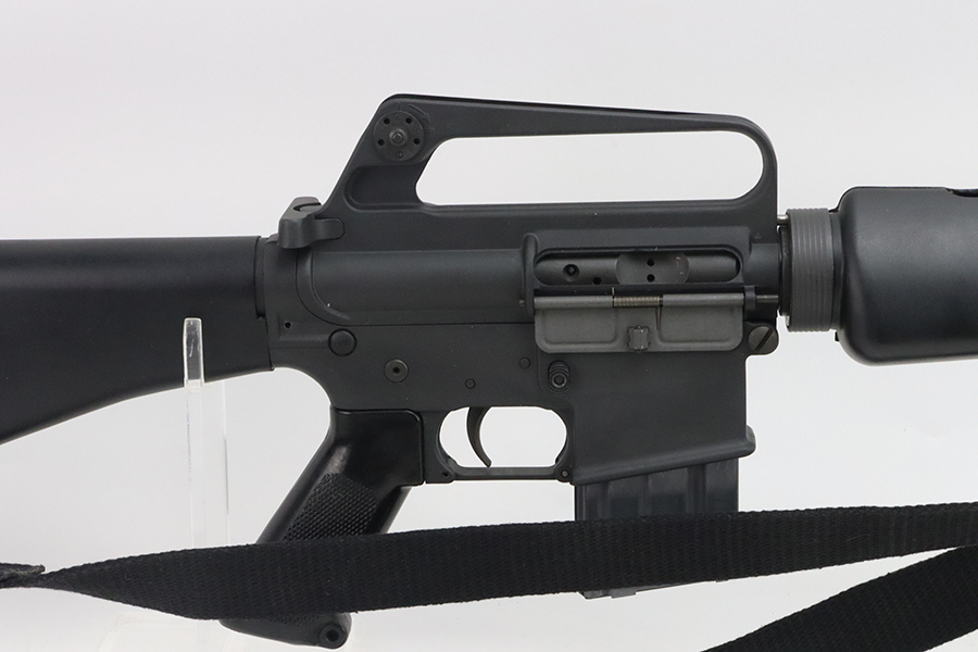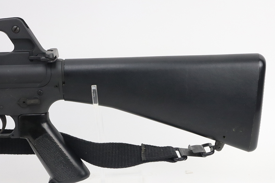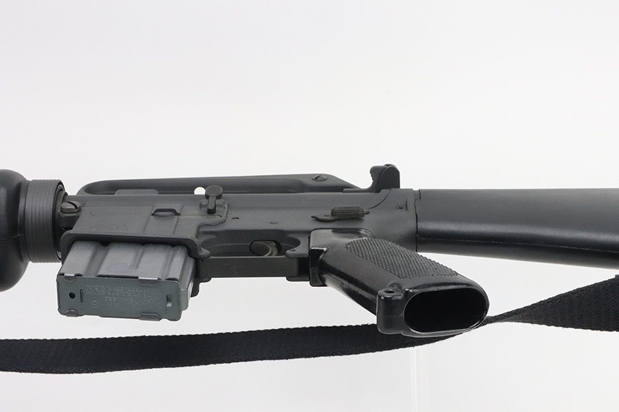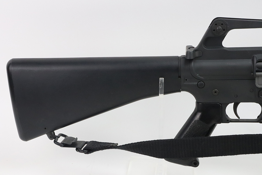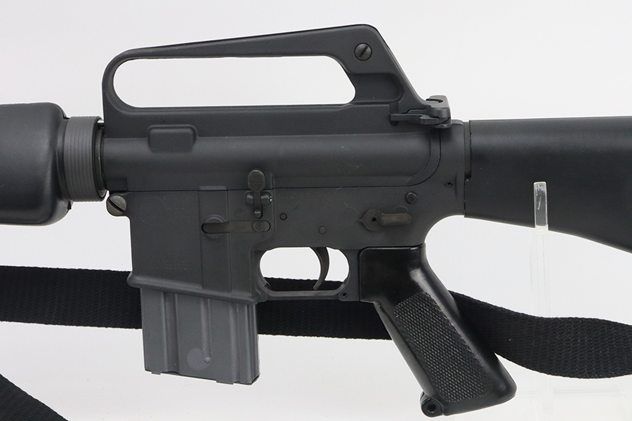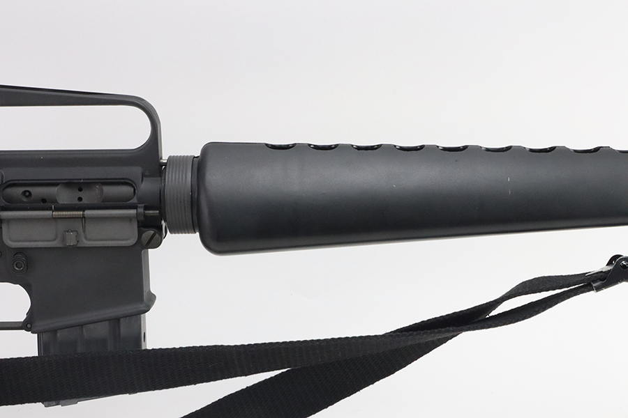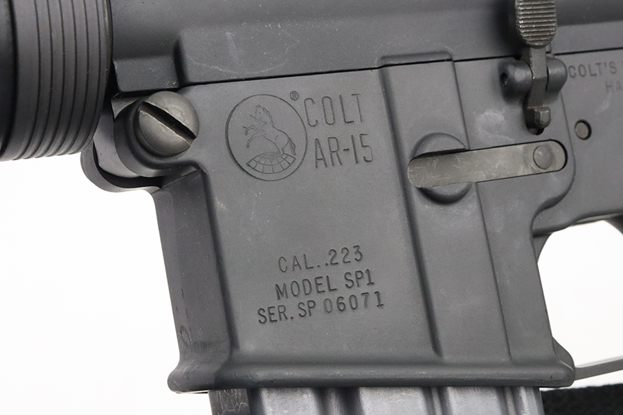 4/4/24 – This is a fantastic example of a very early and desirable Colt SP1 that predates the Vietnam War. Dates to late 1966 or very early 1967. This rifle is original with around 99% finish remaining, just very minor surface scuffing. No notable finish loss, but minor oxidation on the barrel. The early barrel is marked ’12’ on underside, indicating it has the 1×12 inch twist. Three prong flash hider is present, as is bayonet lug. Early triangular handguards and early style buttstock, with no provisions for internal storage. Two piece buffer tube with chrome bolt face. Minty bore and C&R eligible.