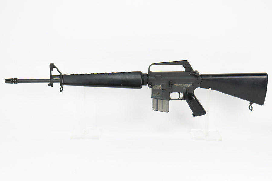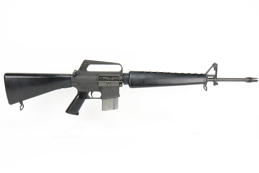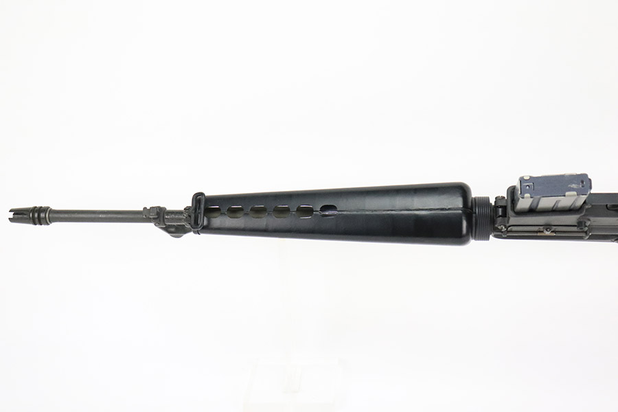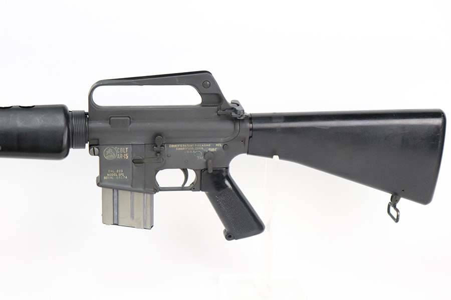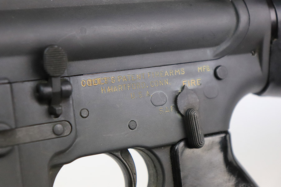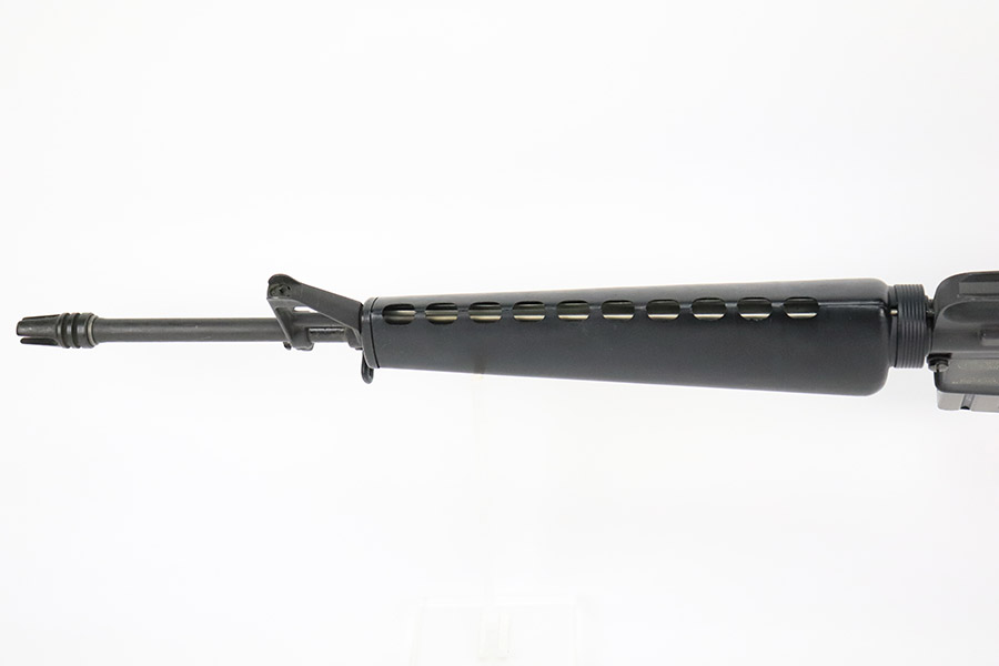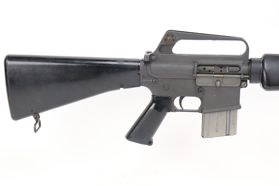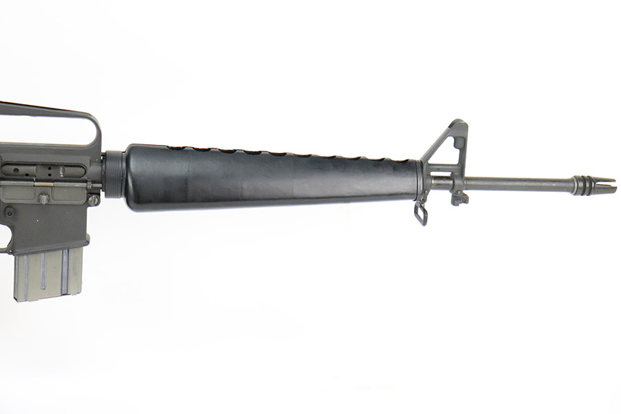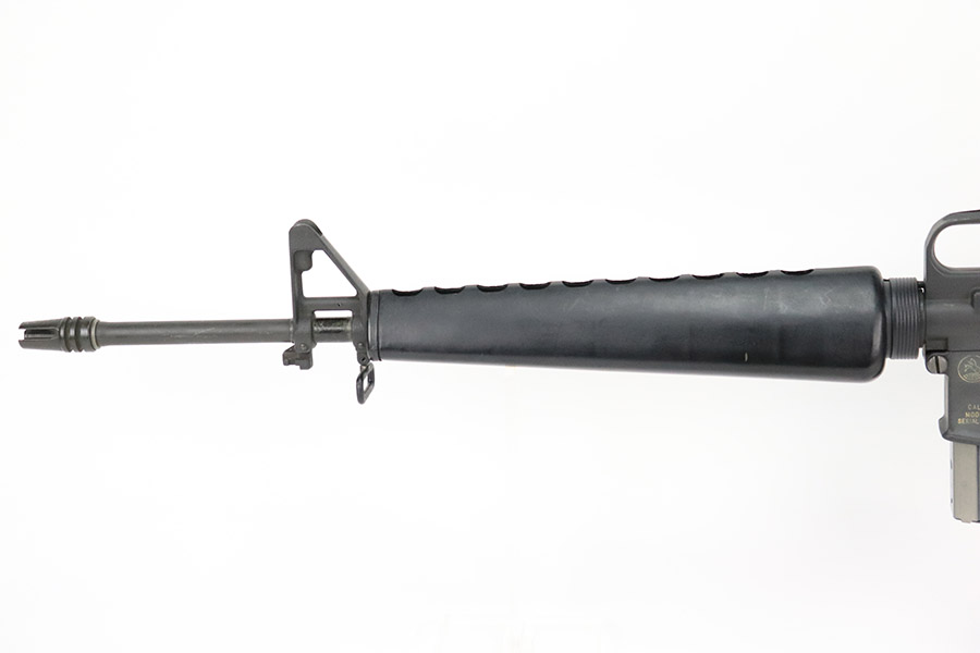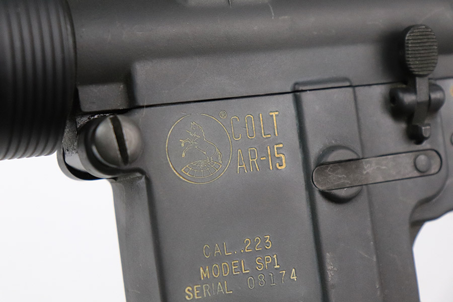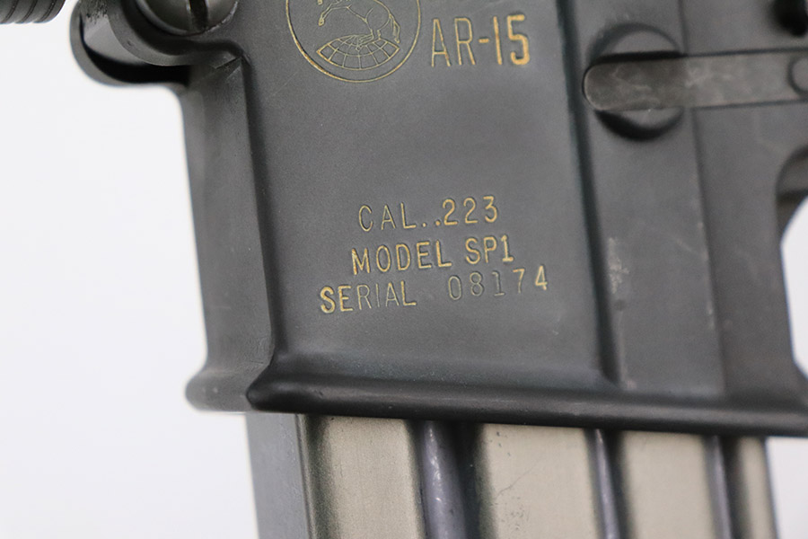 11/4/22 – This is a fantastic example of a very early and desirable Colt SP1 that predates the Vietnam War. Dates to late 1966 or very early 1967, and this is a very rare (but niche) variation with an uncommon roll mark. For about 1,000 serials from 74xx to 85xx, the receiver is roll mark with no “SP” in the serial number. This rifle is original with around 97% finish remaining, just very minor surface scuffing. The early barrel is marked ’12’ on underside, indicating it has the 1×12 inch twist. Three prong flash hider is present, as is bayonet lug. Early triangular handguards and early style buttstock, with no provisions for internal storage. Two piece buffer tube with chrome bolt face. Minty bore and C&R eligible.