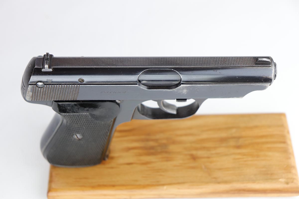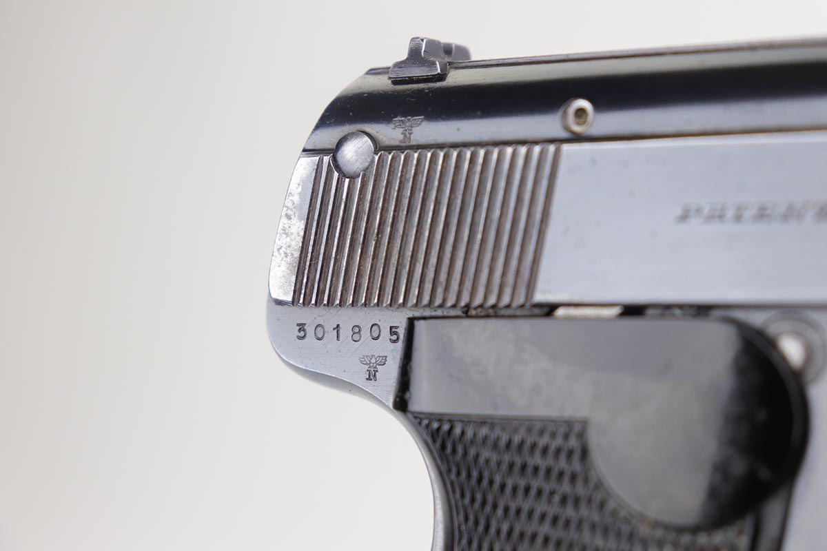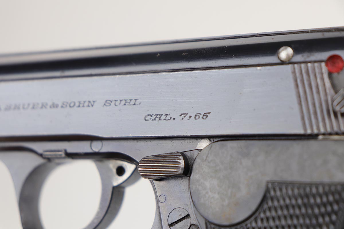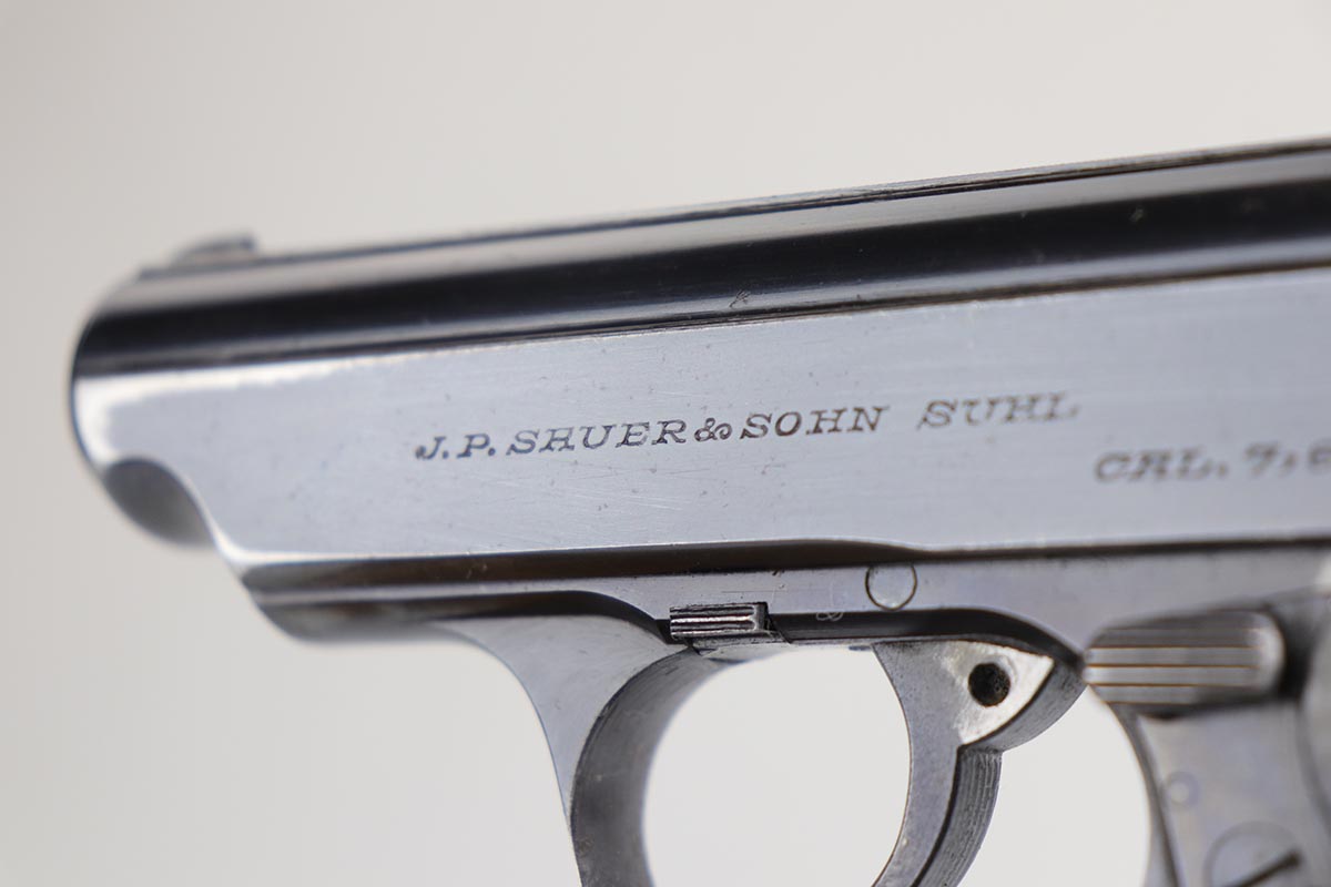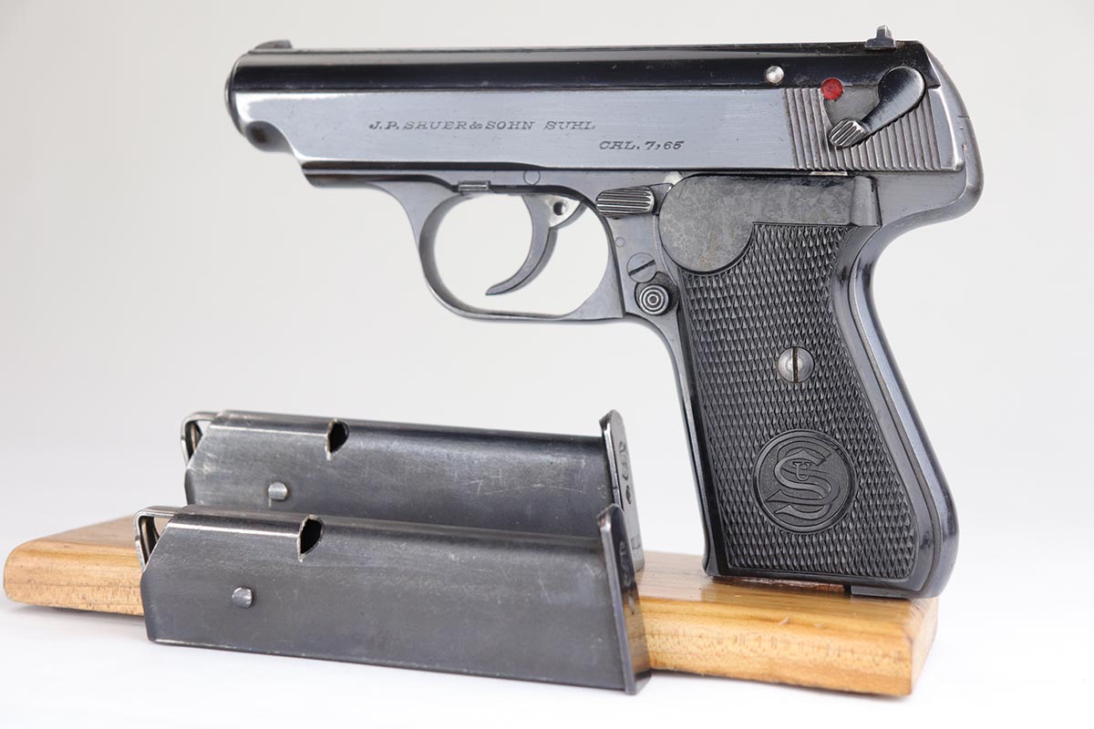 2/28/20 – This is an early commercial Sauer 38h rig with spare magazine, holster and belt. The pistol has high-polish blue with edge wear on both sides of the slide, and an area of finish loss on the trigger guard and bottom of the back strap. Excellent grips and minty bore. Both magazines are early with the double S logo. The holster is marked ‘LBA’ and ’42 dated. The belt buckle is 1938 dated and RZM marked, and these belts were primarily worn by paramilitary or political officials.