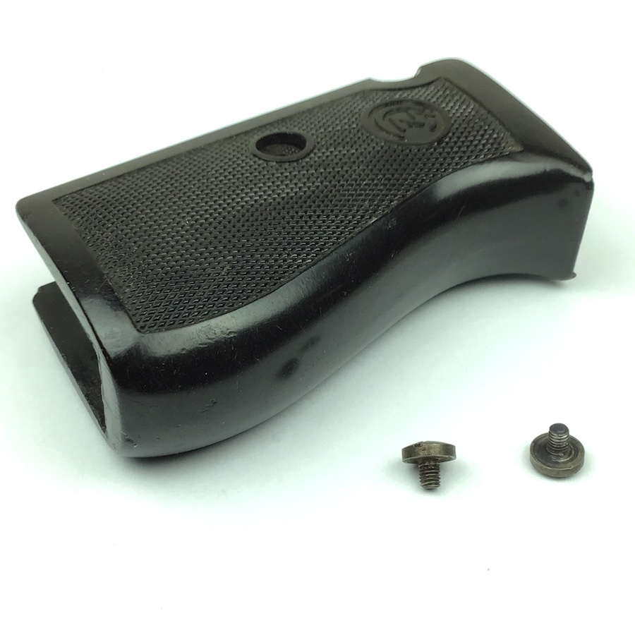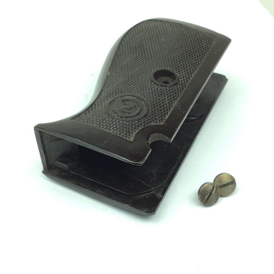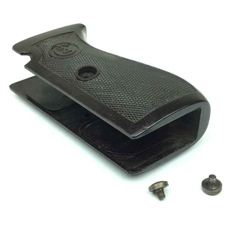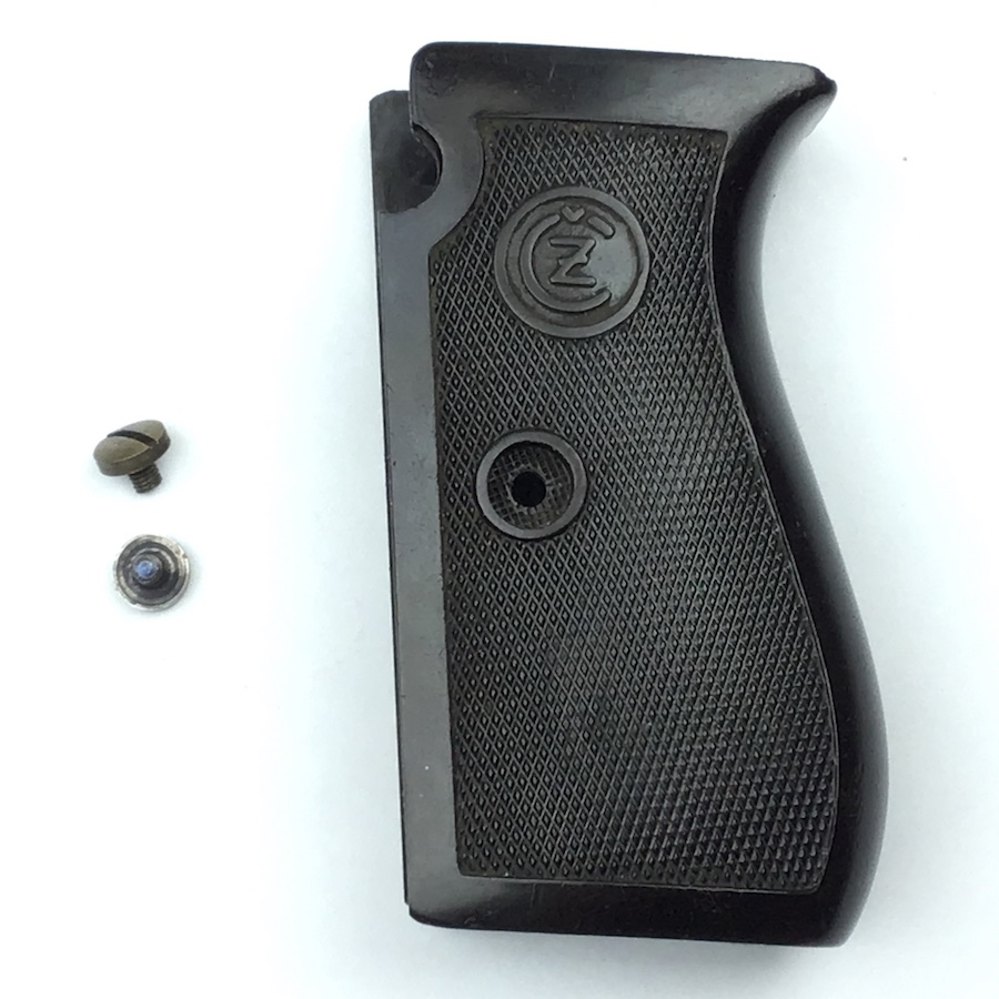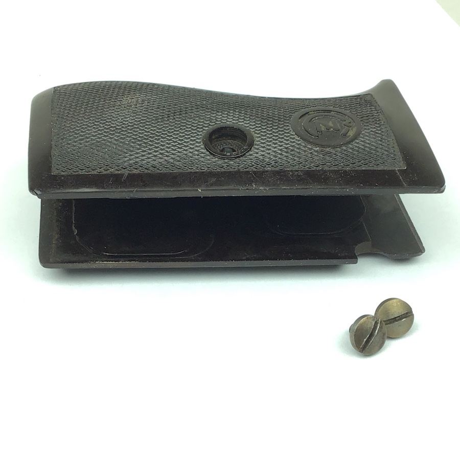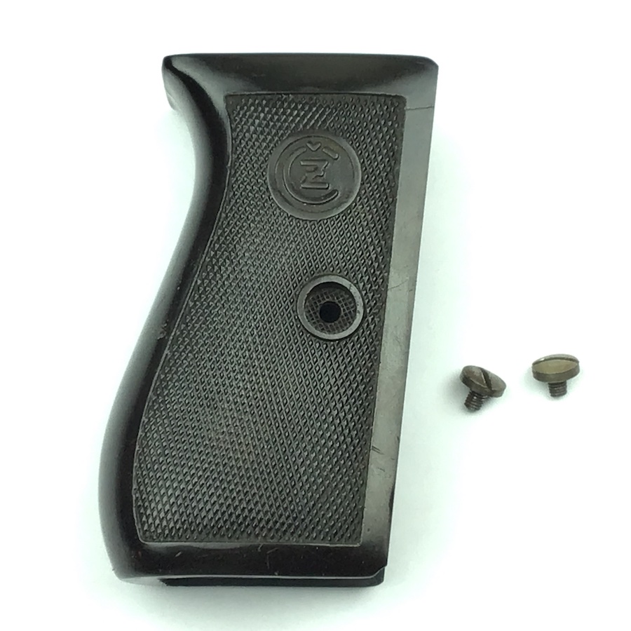 6/5/20 – This is an original WW2 era CZ model 27 grip. The grip is in excellent condition, and the earlier wartime variation. Each side of the grip has the CZ logo inside a circle. The dark brown bakelite is in excellent condition. The grip comes with two original screws.