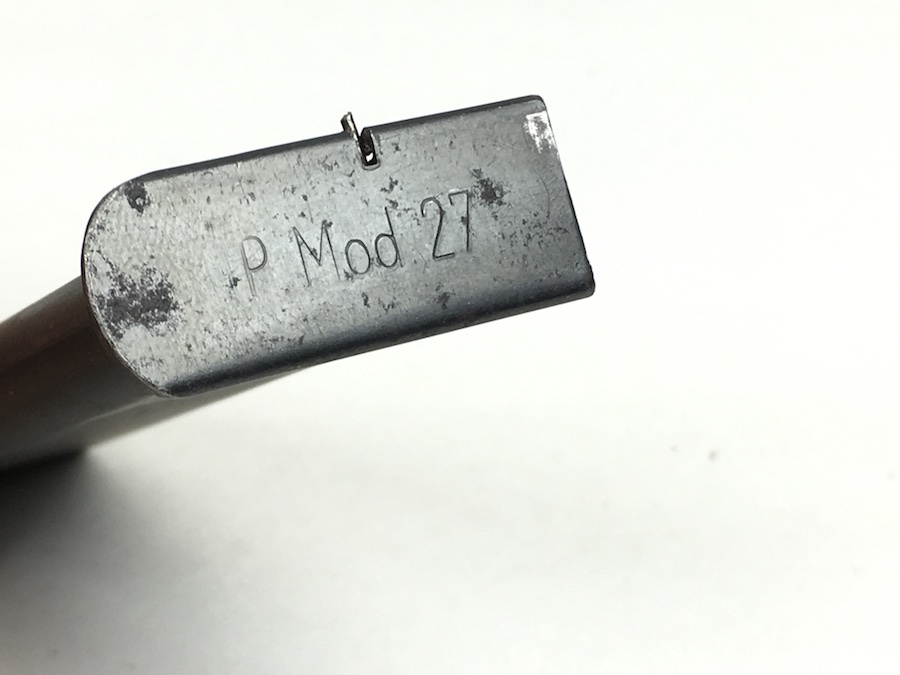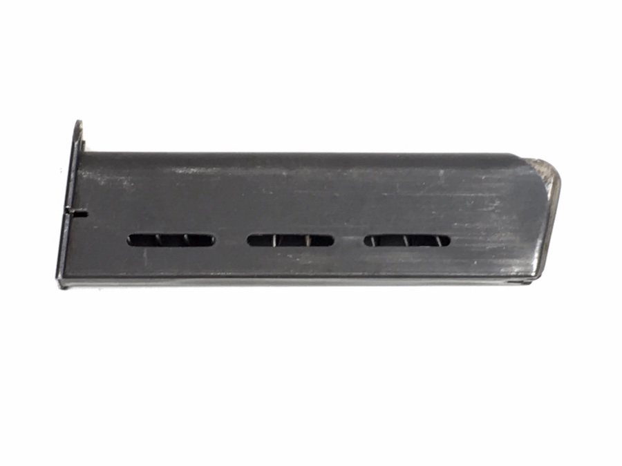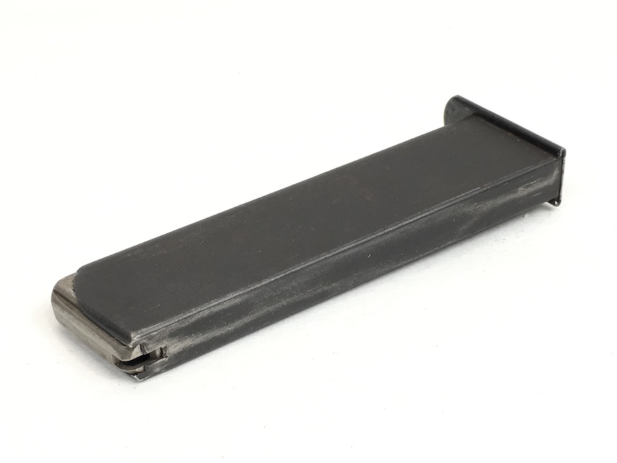 6/18/19 – Original and excellent CZ P. Model 27 magazine. Phosphate body and blued base. Spine has minimal use wear. Base is stamped with “P. MOD 27”. Very small spot of surface corrosion on the base. Strong, smooth spring.