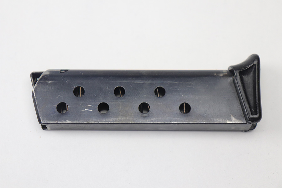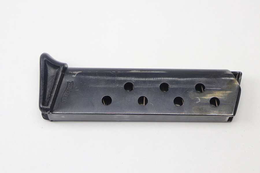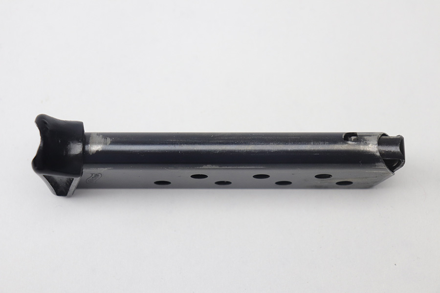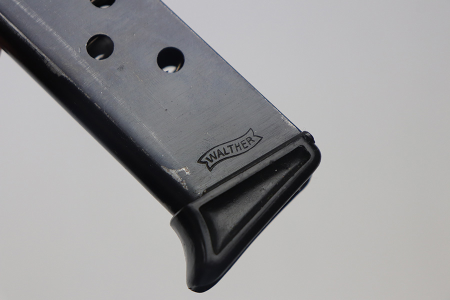 11/17/21 – This is an original Walther PP magazine from early / pre WW2. The magazine has a nice high polish finish and no rust or pitting. Strong, functional spring. The bakelite base has no cracks or chips.