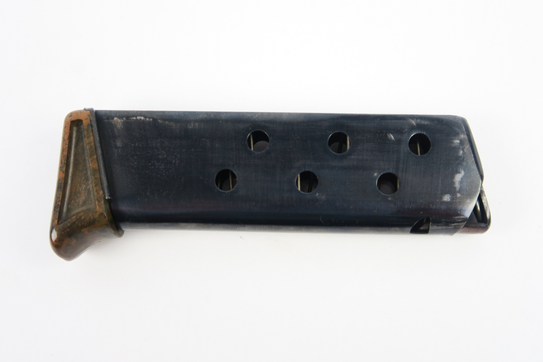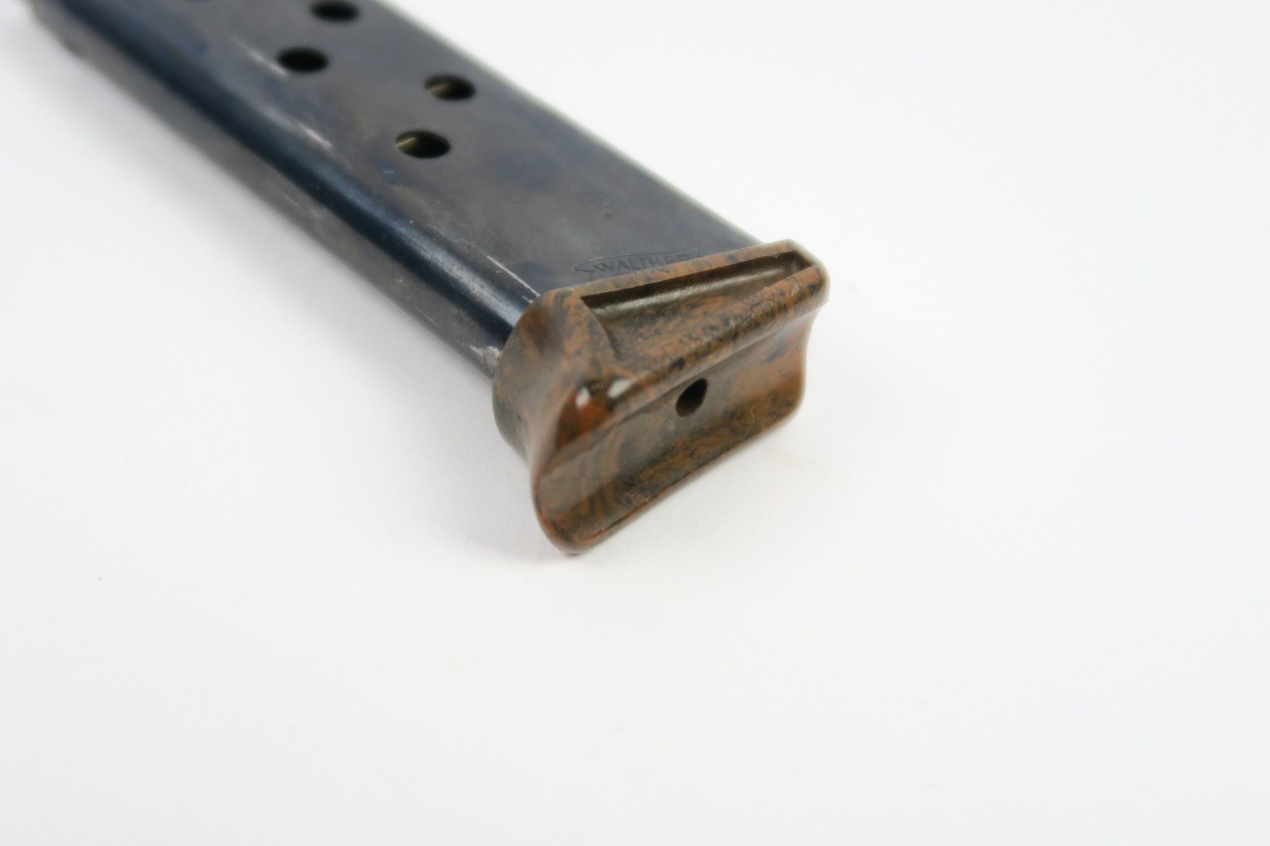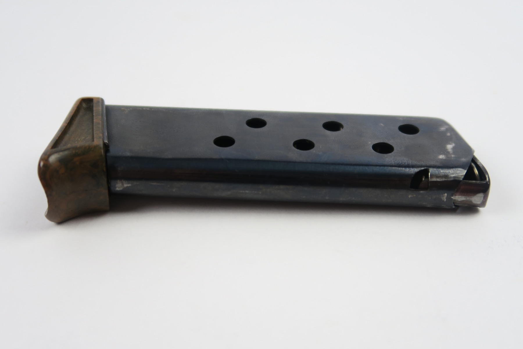 3/21/18 – This is an original Walther PPK finger extension magazine with early / pre WW2 features. The magazine base is a bakelite finger extension with a thin-lip. The magazine is also stamped with a Walther banner only. The magazine is in excellent condition and there are no cracks or chips in the bakelite finger extension. Guaranteed original and authentic.