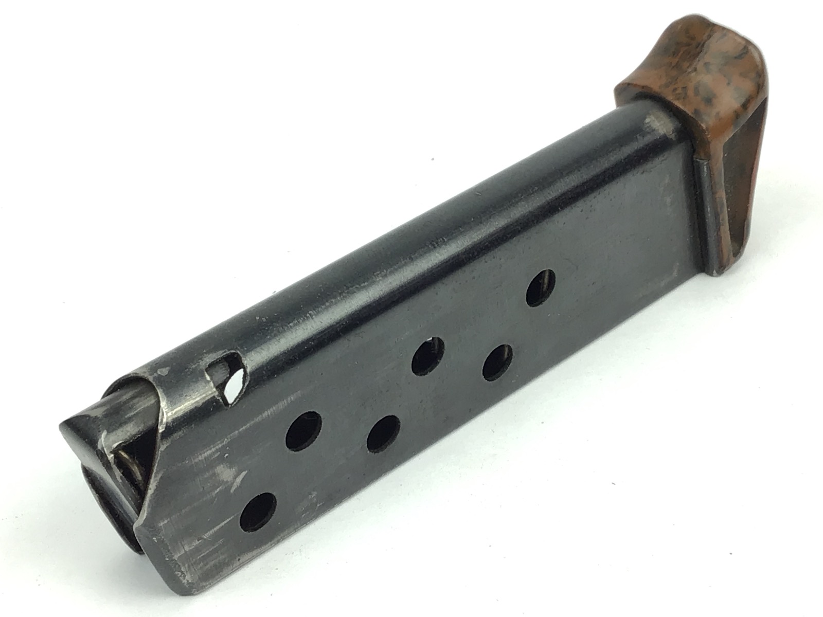 9/4/20 – This is an original early / pre WW2 Walther PPK finger extension magazine. Great condition except for minor use wear. Fully functional and has a nice high polish finish. The finger extension base is the early thin lip style with no cracks or chips. Guaranteed original.