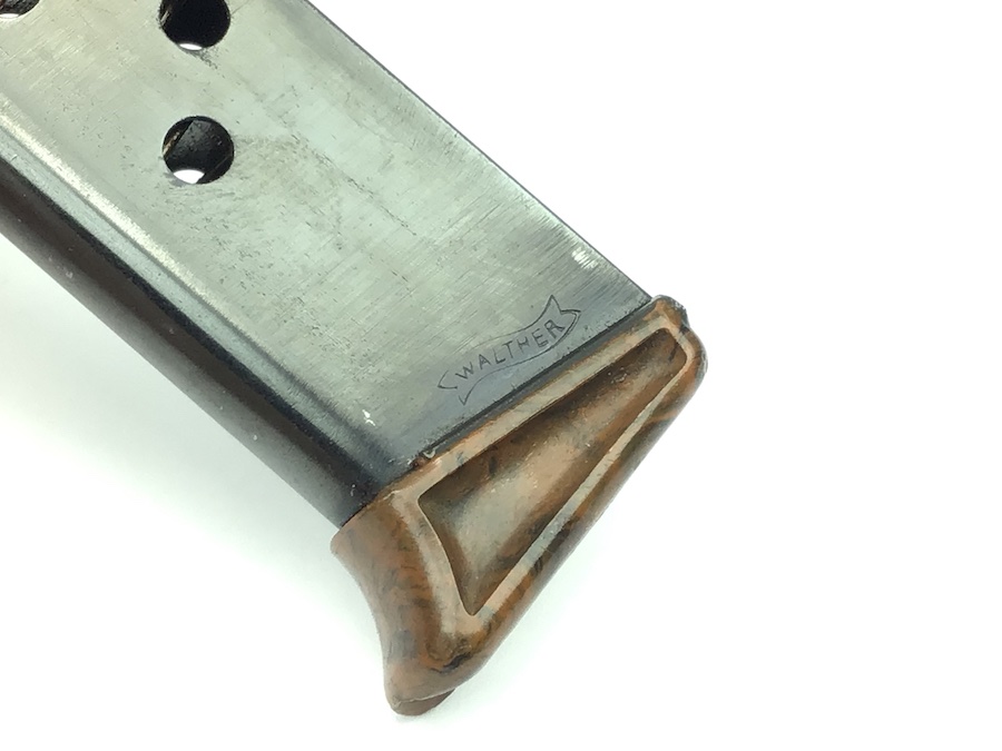 11/5/20 – This is an original early / pre WW2 Walther PPK finger extension magazine. Great condition except for minor use wear. Fully functional and has a nice high polish finish. The finger extension base is the early thin lip style with no cracks or chips. Guaranteed original.