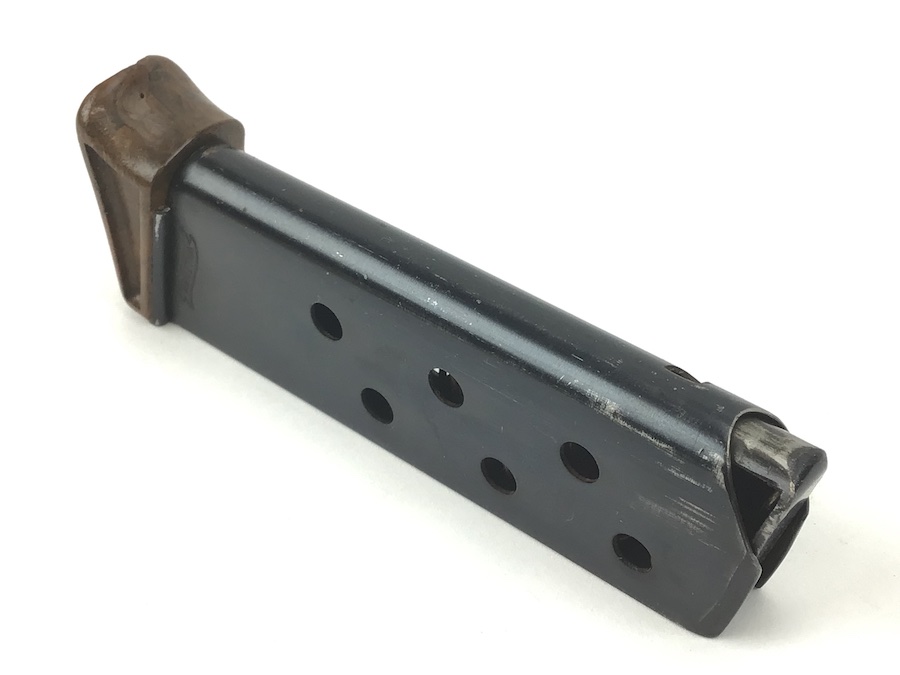 4/1/21 – This is an original early / pre WW2 Walther PPK finger extension magazine. Great condition except for minor use wear. Fully functional and has a nice high polish finish. The finger extension base is the early thin lip style with no cracks or chips.