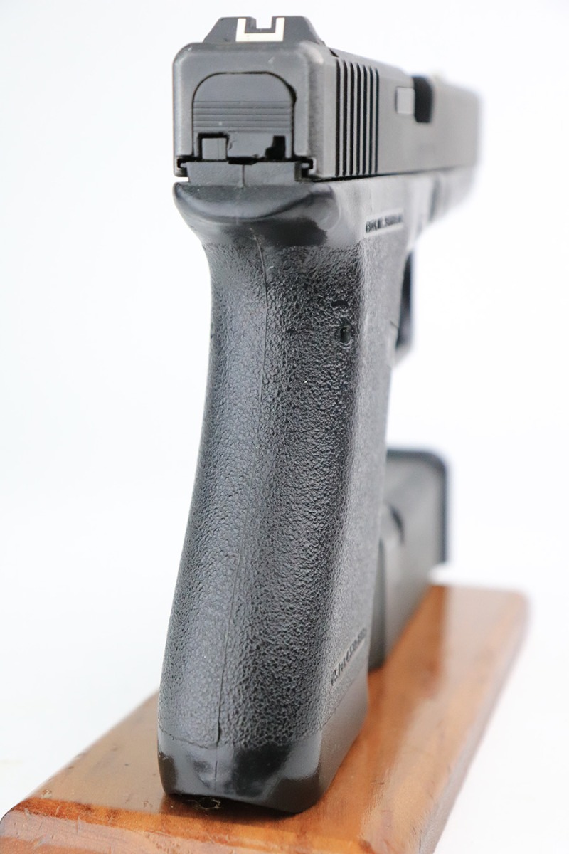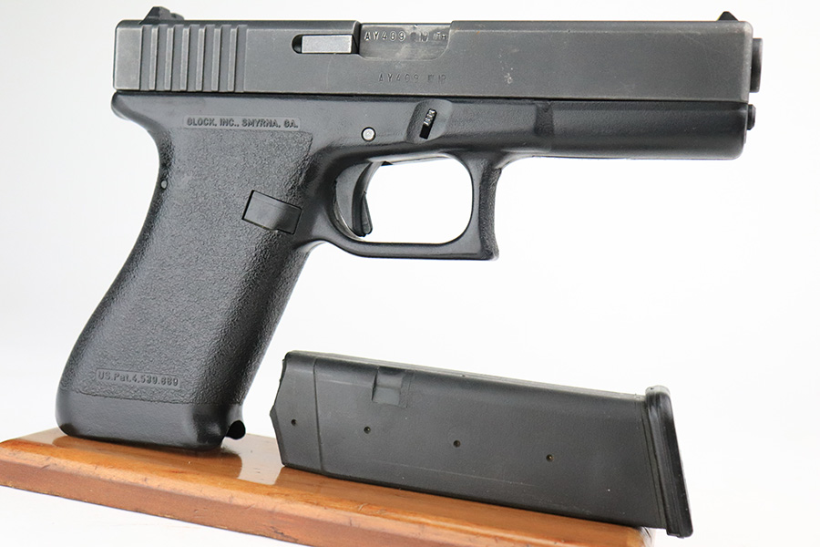 6/29/22 – This is a somewhat hard-to-find Gen 1 Glock 17 from 1986. It has edge wear along the slide as it does show some use but the bore is still excellent. Gen 1 Glocks feature stippling all around the grip, with no grooves in the grip and no accessory rail on the frame. A new recoil spring and guide were installed but the originals are included with the listing. FFL required.