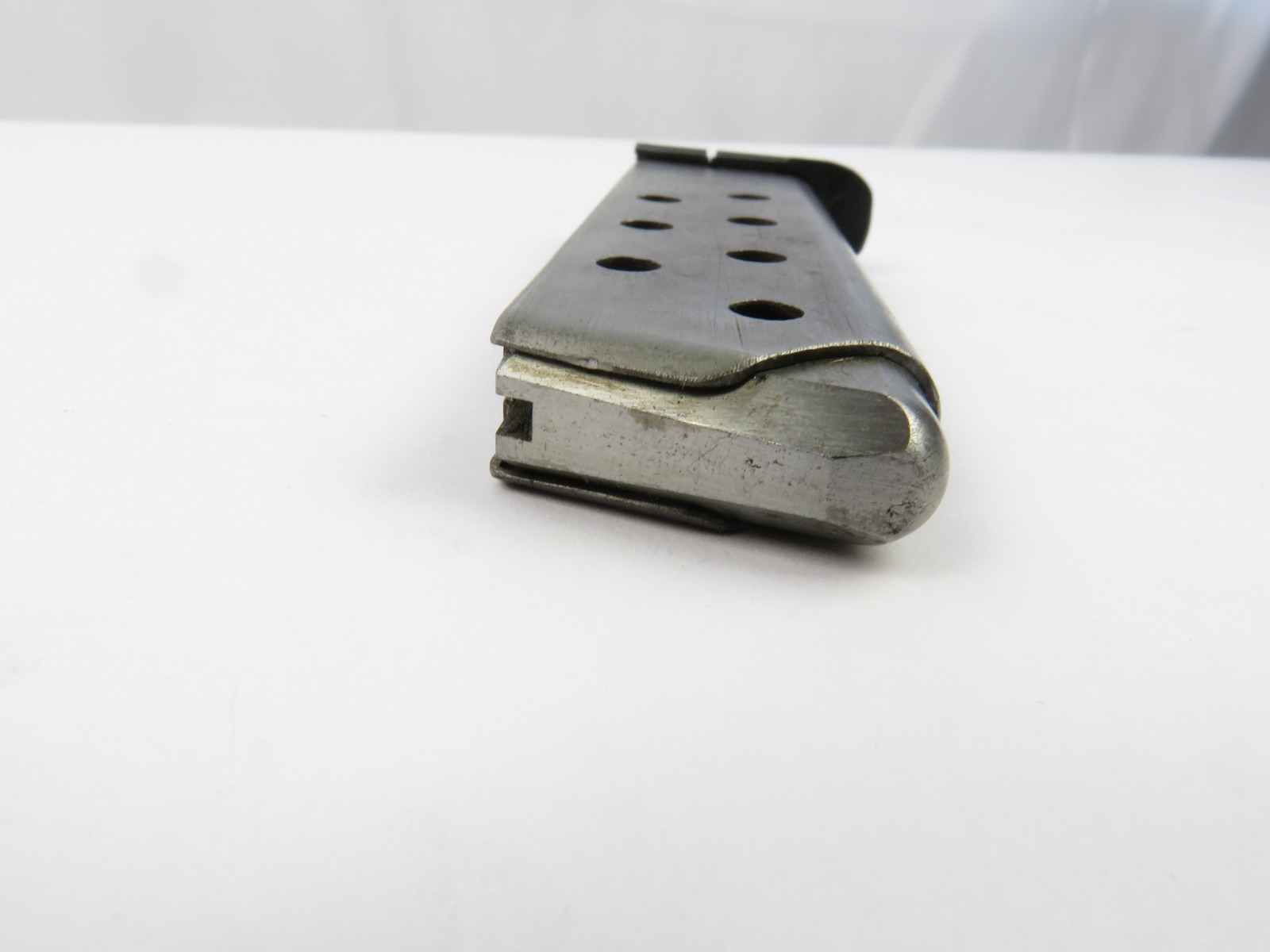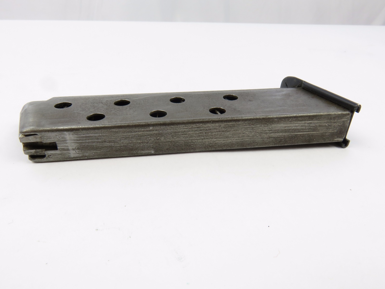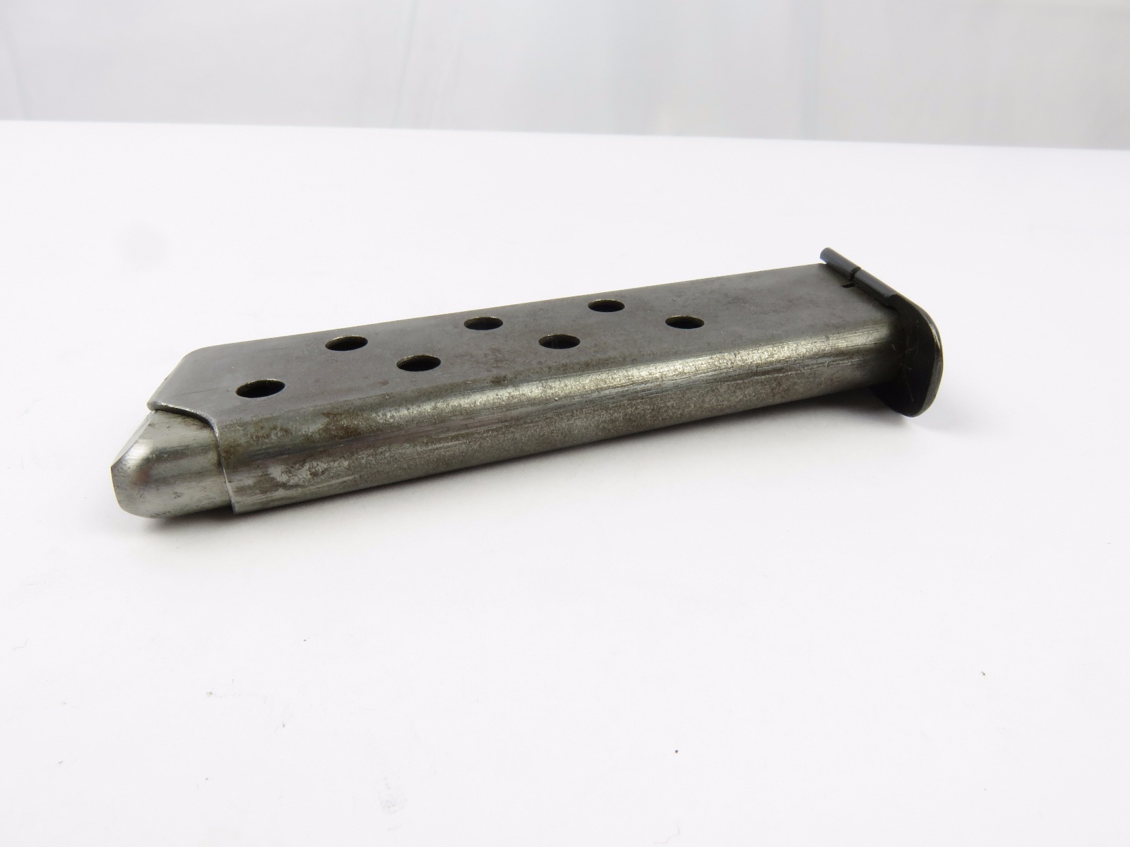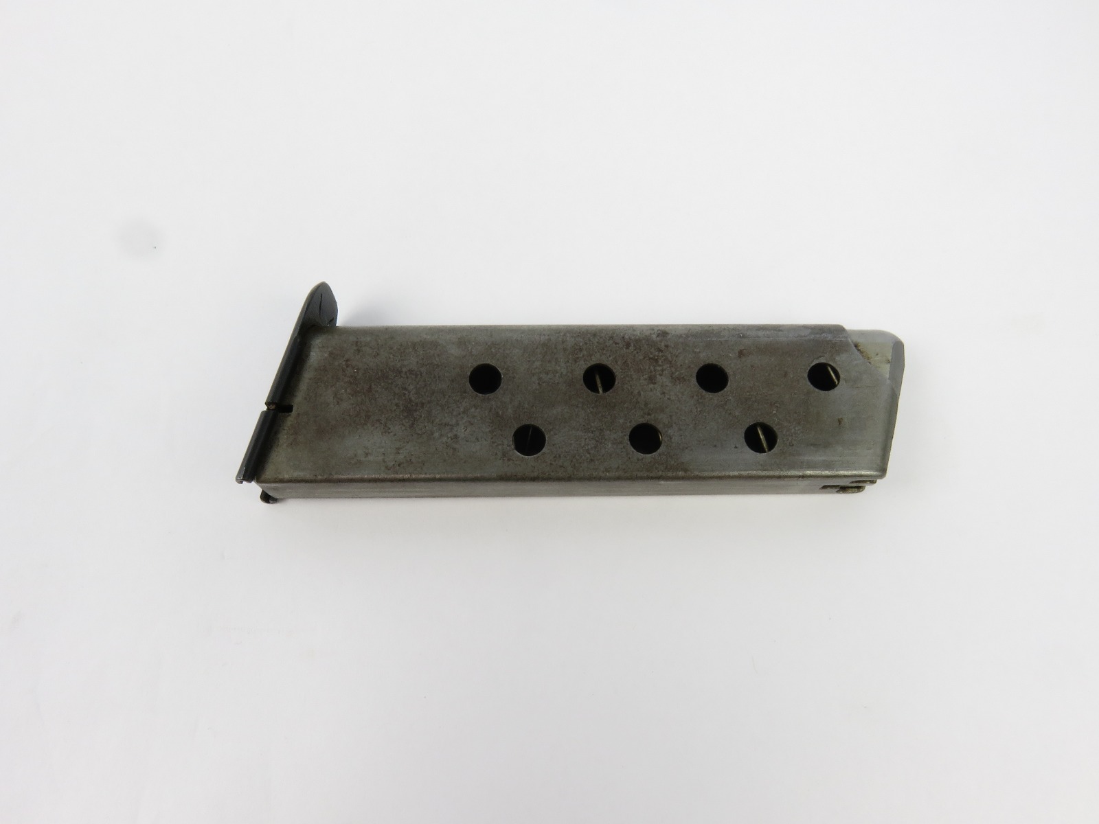 7/17/17 – This is an original Mauser Hsc magazine from pre WW2. The magazine has a phosphate tube and a blued base. The base is Mauser banner stamped. There are no other markings. The tube has some wear throughout, but no rust or pitting. The spring is strong and fully functional.