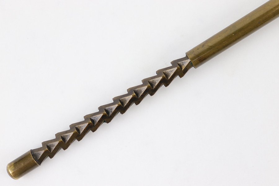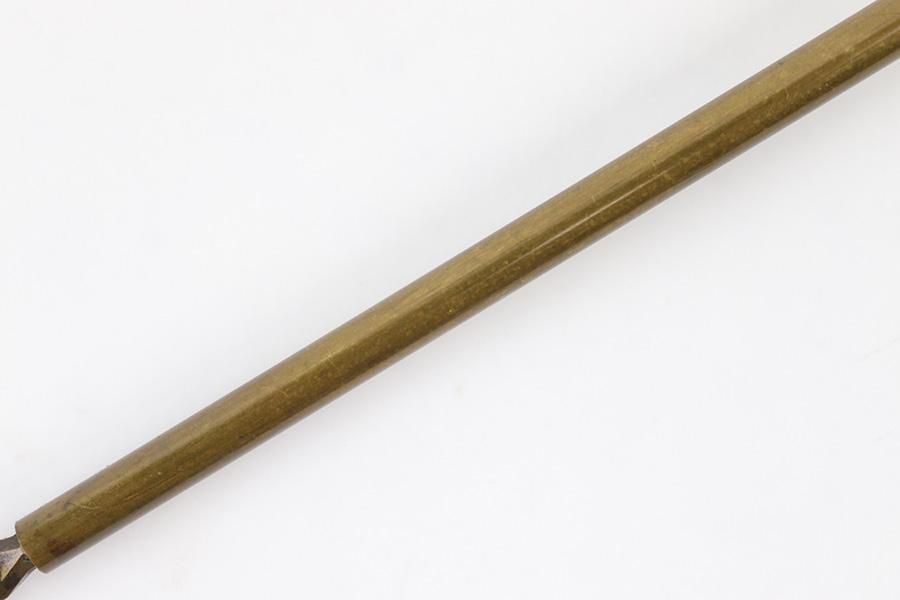 4/7/23 – This is an early WW1 production Imperial Navy Luger cleaning rod. These are extremely scarce and nearly impossible to find. Notice the early zig-zag pattern at the toe of the rod – this is unique to the WW1 German Navy Luger cleaning rods. Overall length is approx. 8 inches. There’s some mild patina throughout but no rust or pitting. The wood is original and in excellent condition.