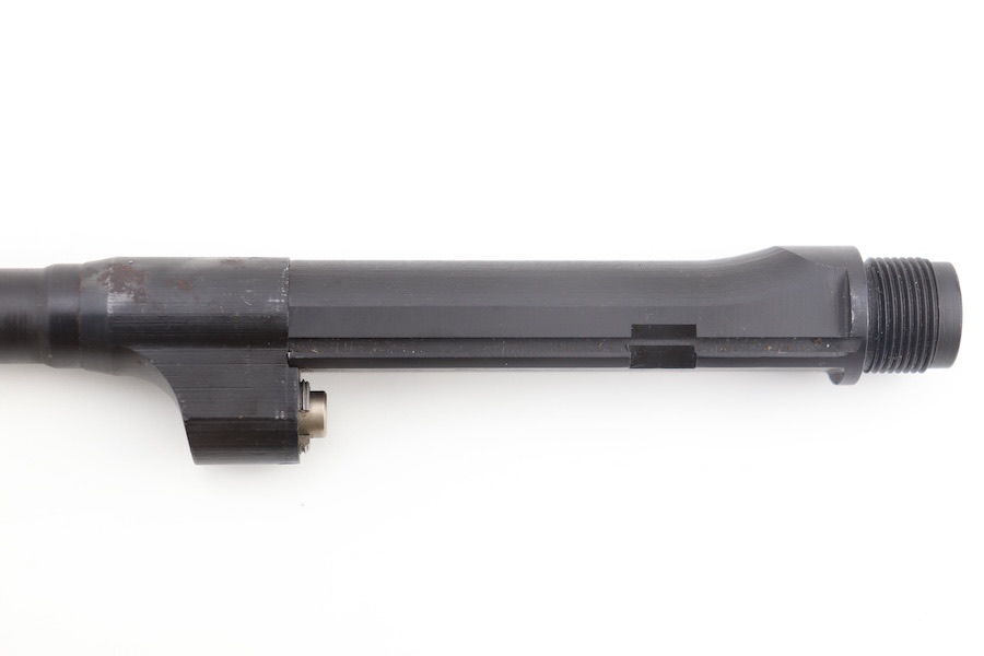 3/22/24 – This is an original and great condition M1 Carbine barrel made by Inland. There are some light patches of surface rust on the outer surface of the barrel and near the gas port. The bore is essentially mint condition with only the slightest wear in the rifling grooves, but it has a mirror finish. The threads near the breech have no wear. Overall finish rates 85-90%.