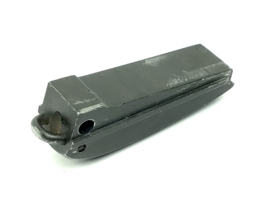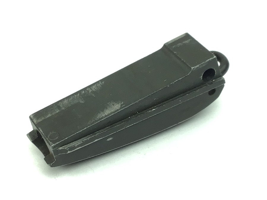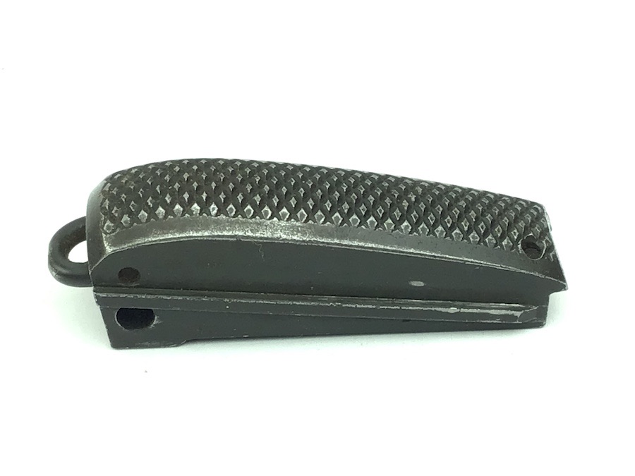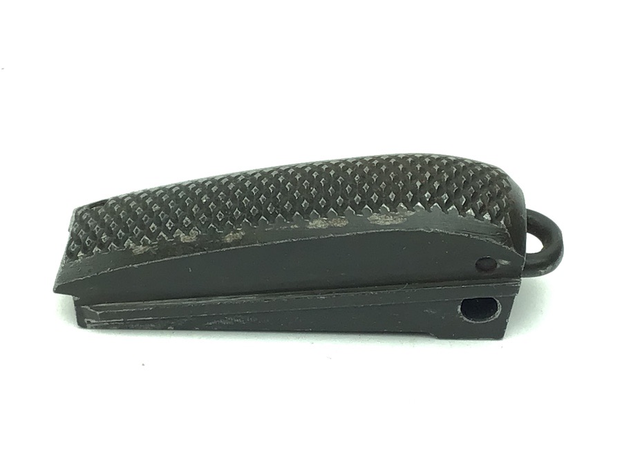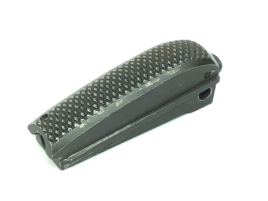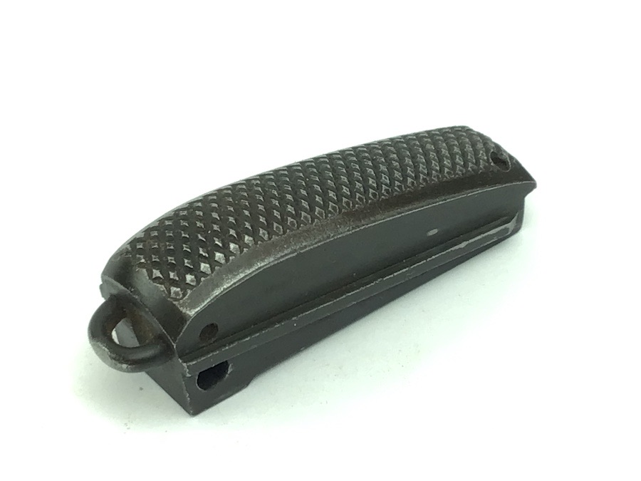 8/10/22 – Original, USGI Arched & Checkered Mainspring Housing assembly with Lanyard Loop. Original finish rates 80 – 90%. Made for the M1911A1 Pistol. Used on early Colt and Ithaca Pistols.  Complete assembly in usable condition.
