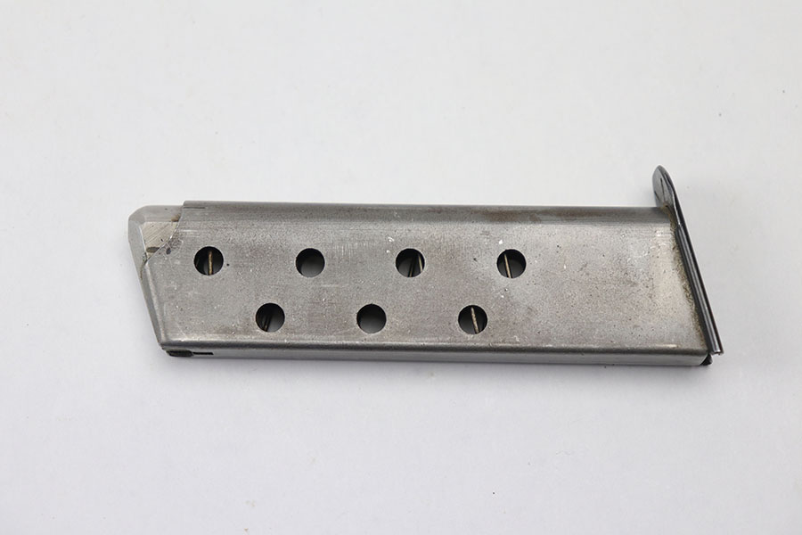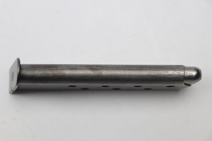 10/26/21 – This is an early Mauser banner stamped HSC magazine from WW2. The magazine has some mild patina on the tube, but is in excellent overall condition. Blued base is Mauser banner stamped. Fully functional spring.