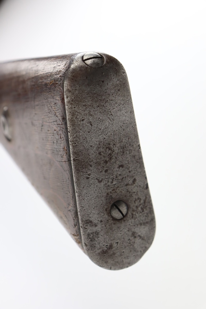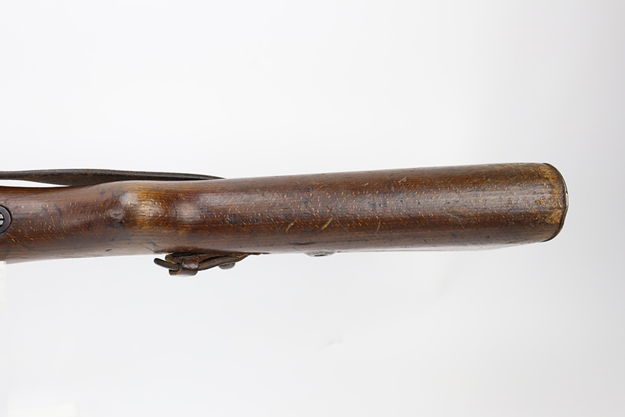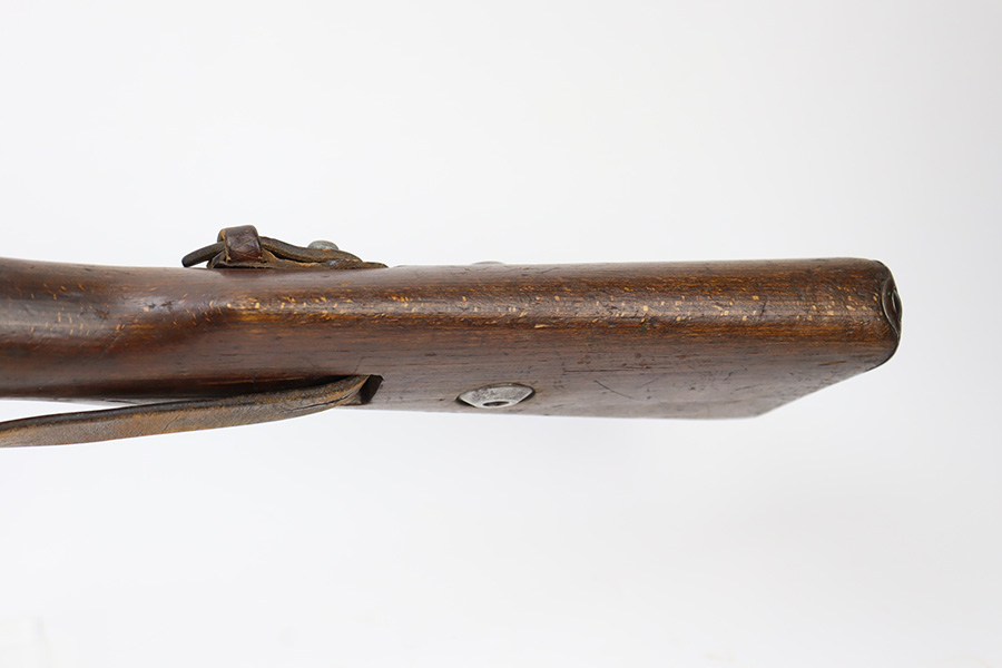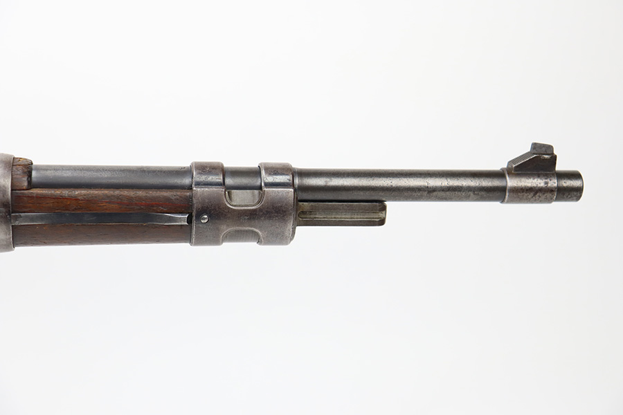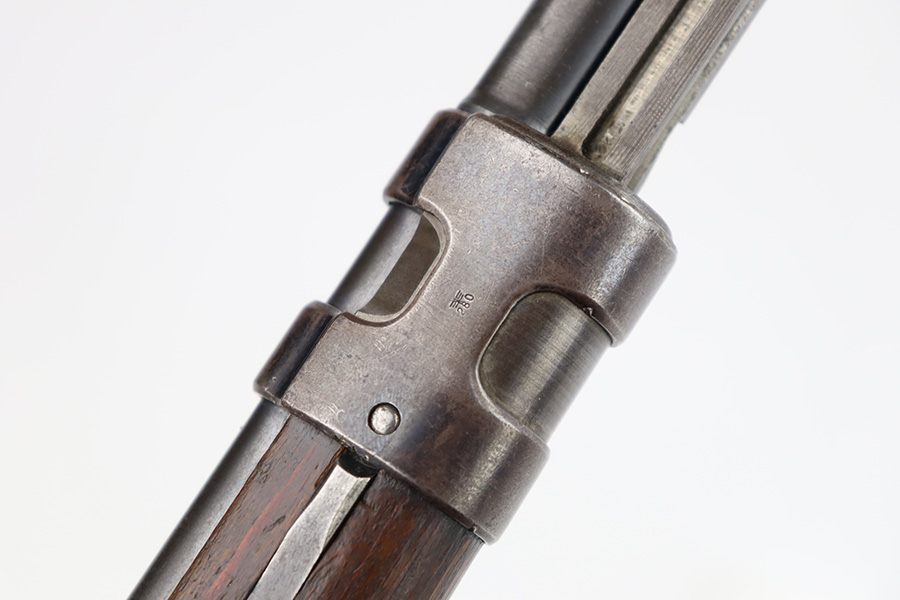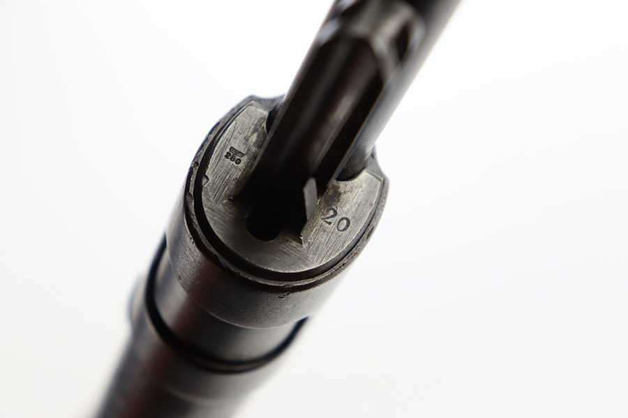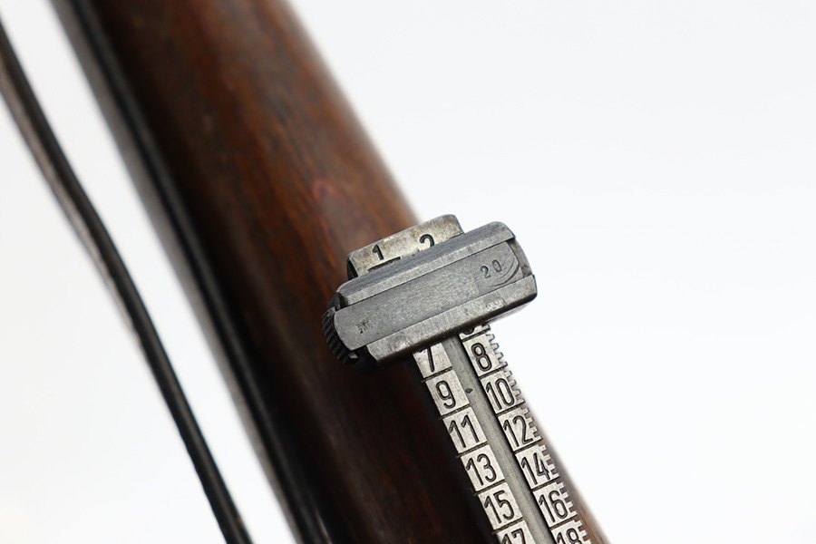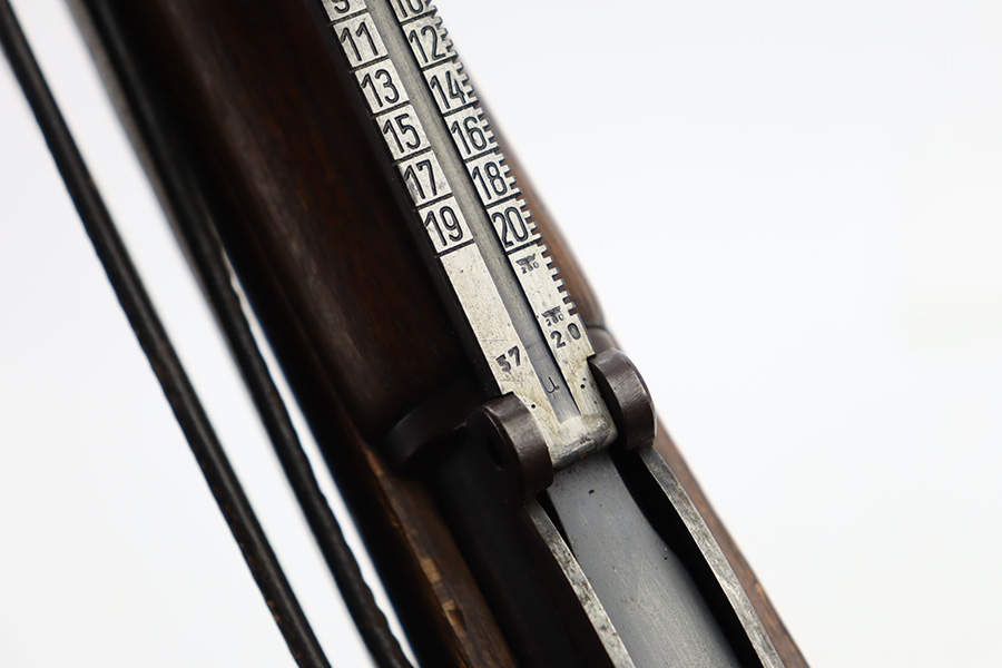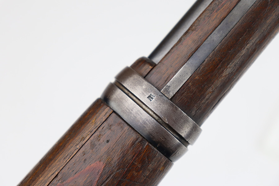 12/1/23 – This is a matching and original K98 that was made in 1938 for the German Army at the Mauser AG Borsigwalde factory. All numbered parts on the rifle match, including the receiver, barrel, bands, rear sight assembly, trigger assembly, floorplate, buttplate, stock, bolt, etc. The safety is unnumbered and was likely replaced/repaired at some point. The bluing on the rifle is original but shows some thinning and patina throughout, most pronounced on the trigger group and the barrel. Bore has good rifling but minor frost and freckling in the grooves. The stock shows handling wear and age with a thin gouge on the right face, but no structural issues. Comes with a worn but original leather sling.