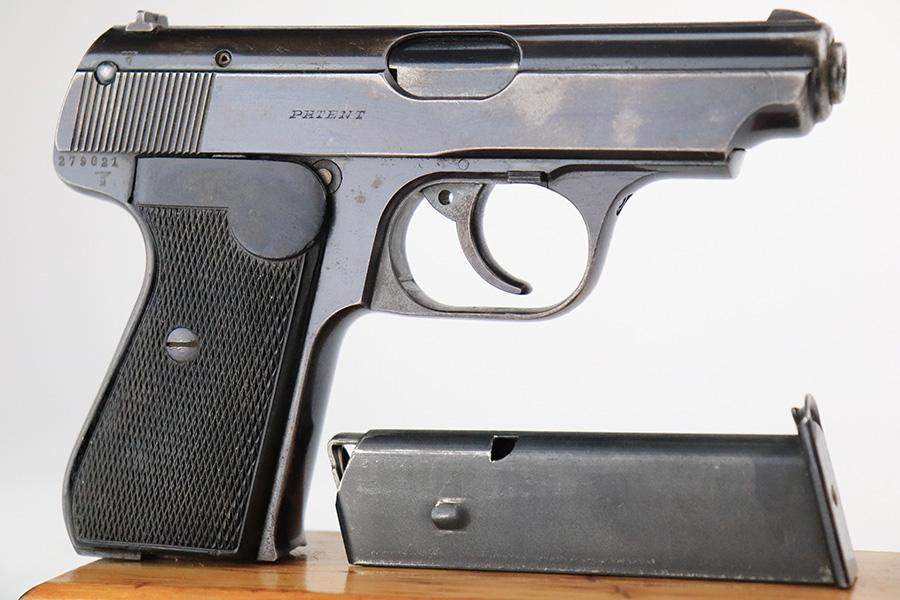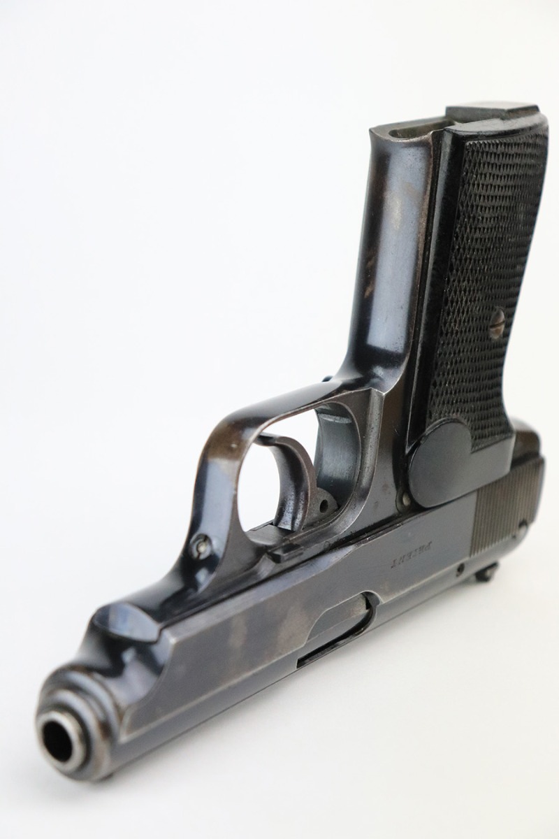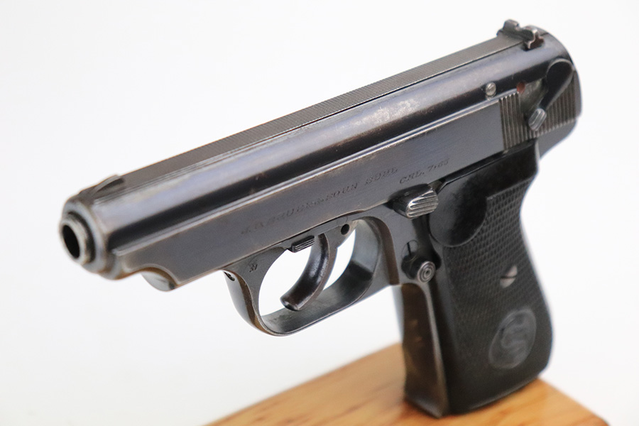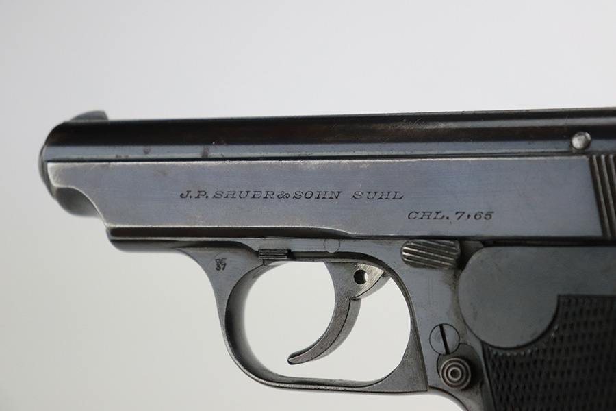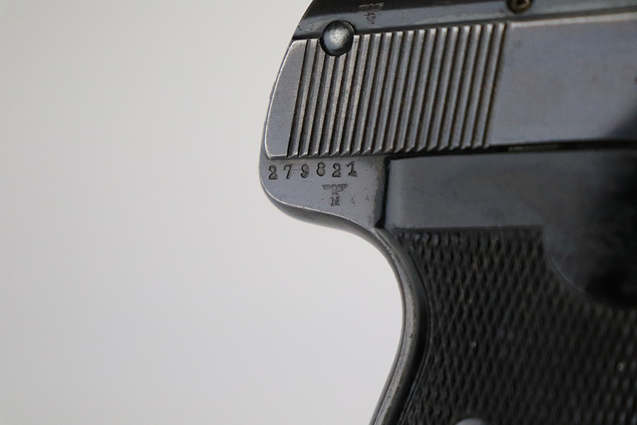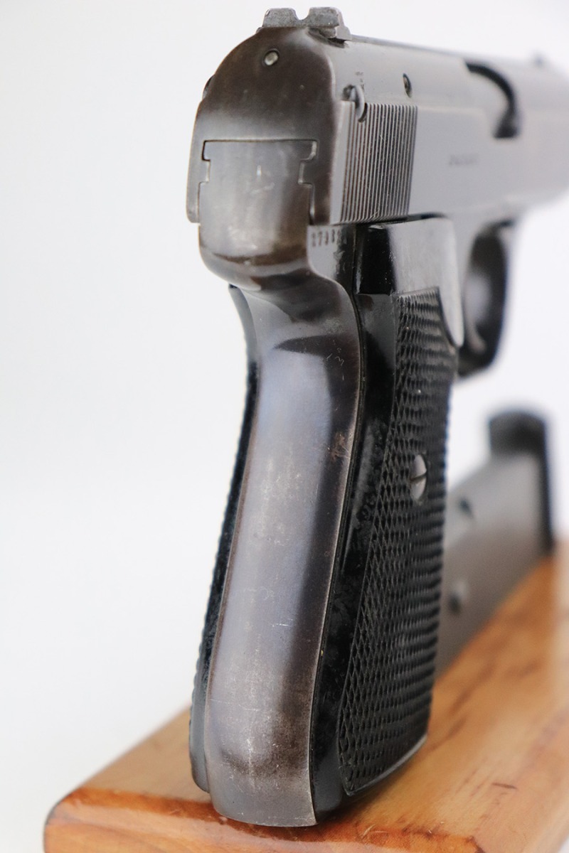 6/8/22 – This is a nice example of an early Sauer 38h issued to the Nazi military during WW2. It is all matching and has the proper “Eagle 37” military acceptance proof on the left side of the trigger guard. It has retained roughly 85% of its original early high polish finish. There is spotty wear and light brown patina throughout, most noticeable on the right side of the slide and on the grip straps. Comes with excellent period-correct black bakelite grips and a proper magazine. Mint bore.